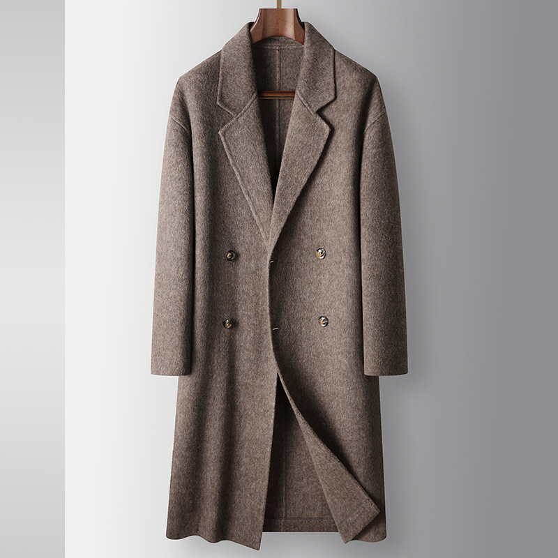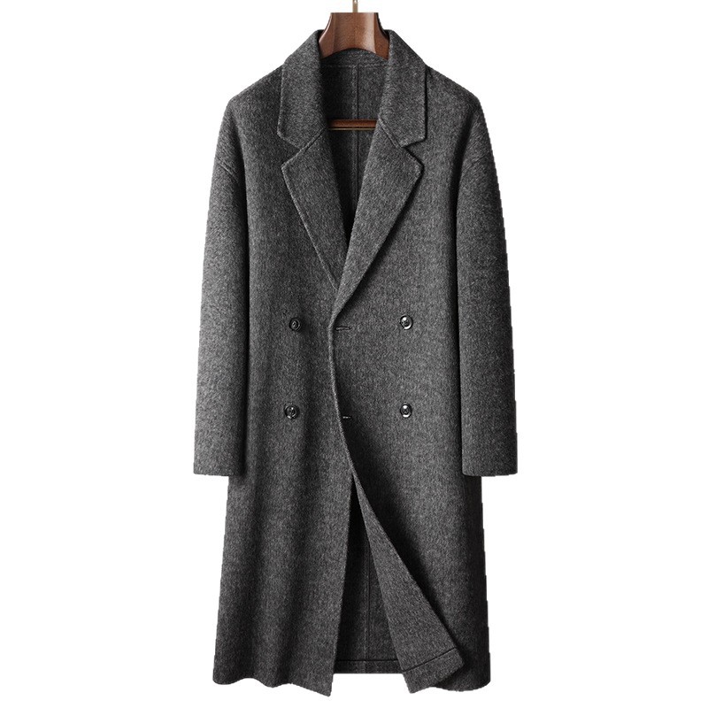 过膝长款双面呢男式大衣2025秋冬青年轻奢双排扣宽松羊毛风衣