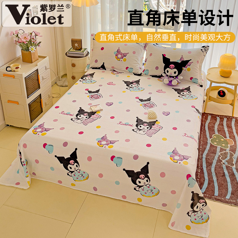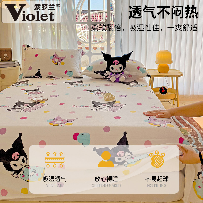 紫罗兰三丽鸥高克重卡通印花牛奶绒床单冬季学生宿舍保暖被单床单