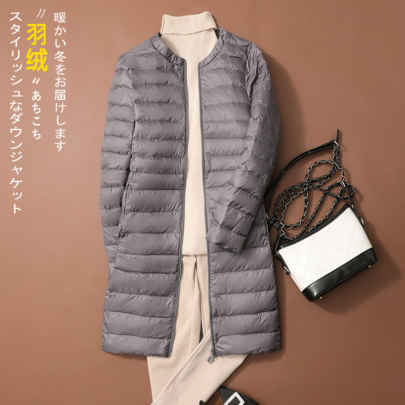优质女装2025秋冬新款轻薄羽绒服女中长款圆领长袖修身内胆轻便外