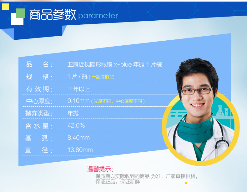卫康隐形近视眼镜年抛透明高度数透氧透明1片装官方正品旗舰店SK