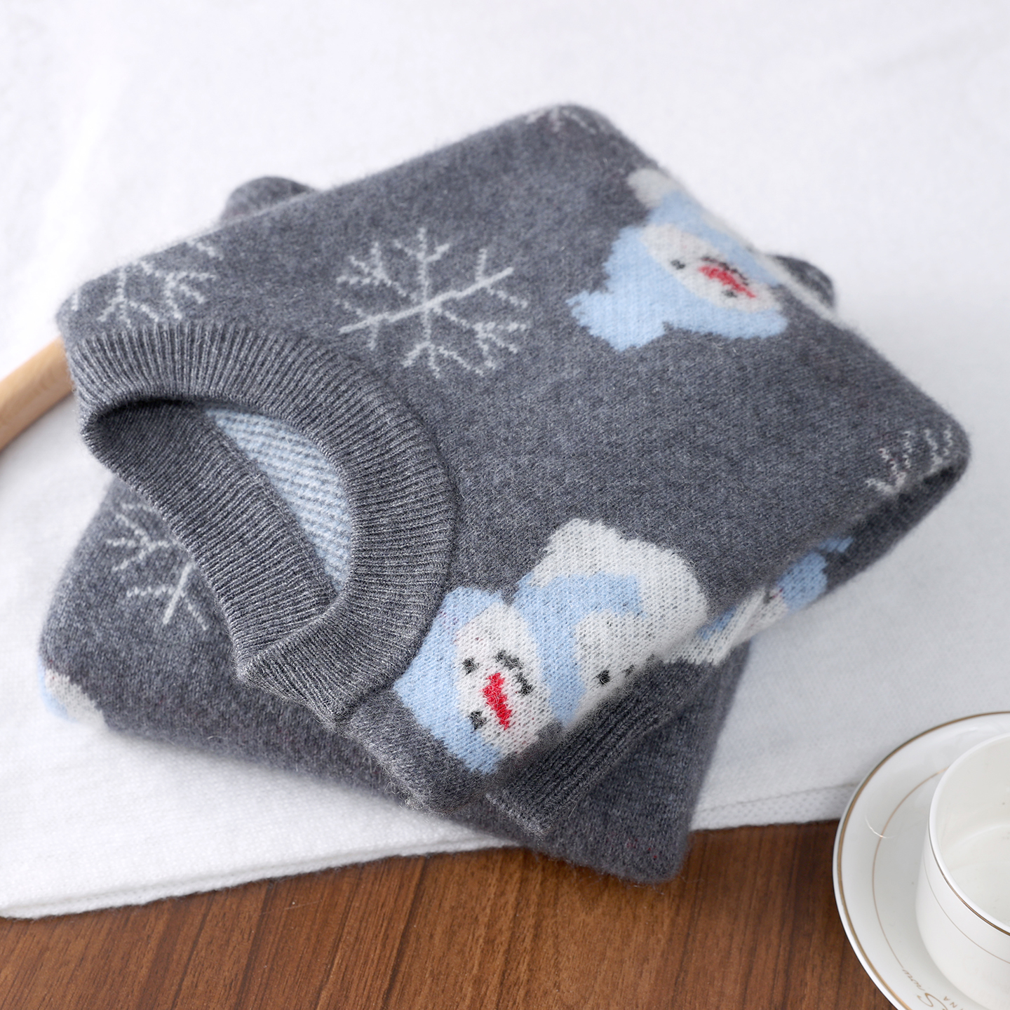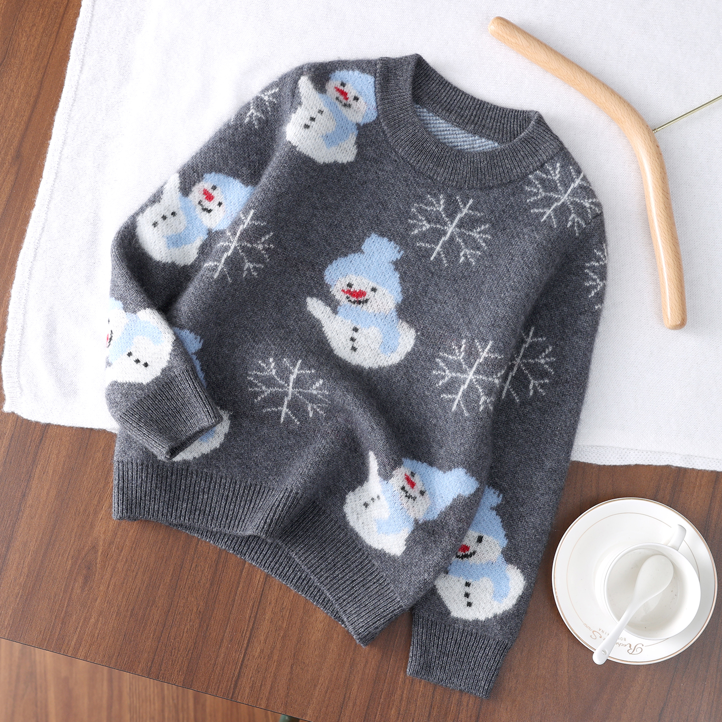 儿童羊绒衫四平加厚提花雪人毛衣