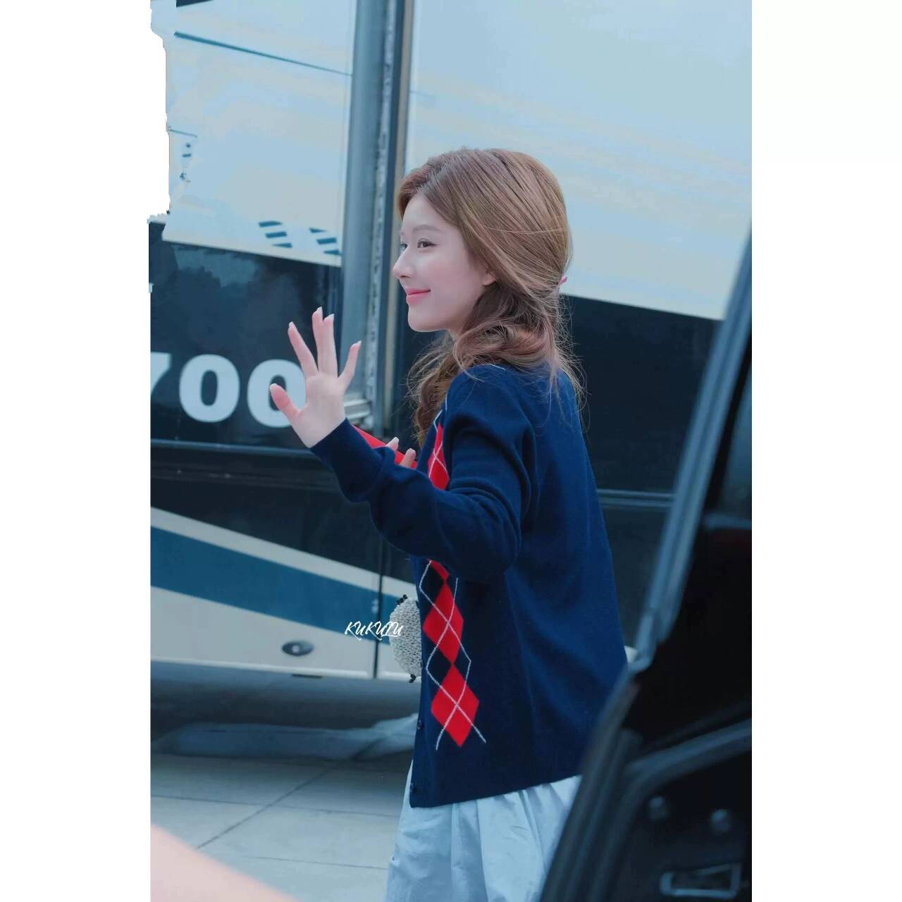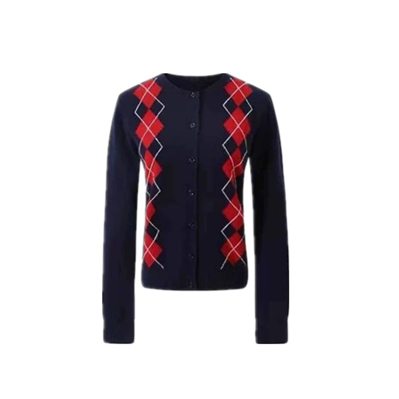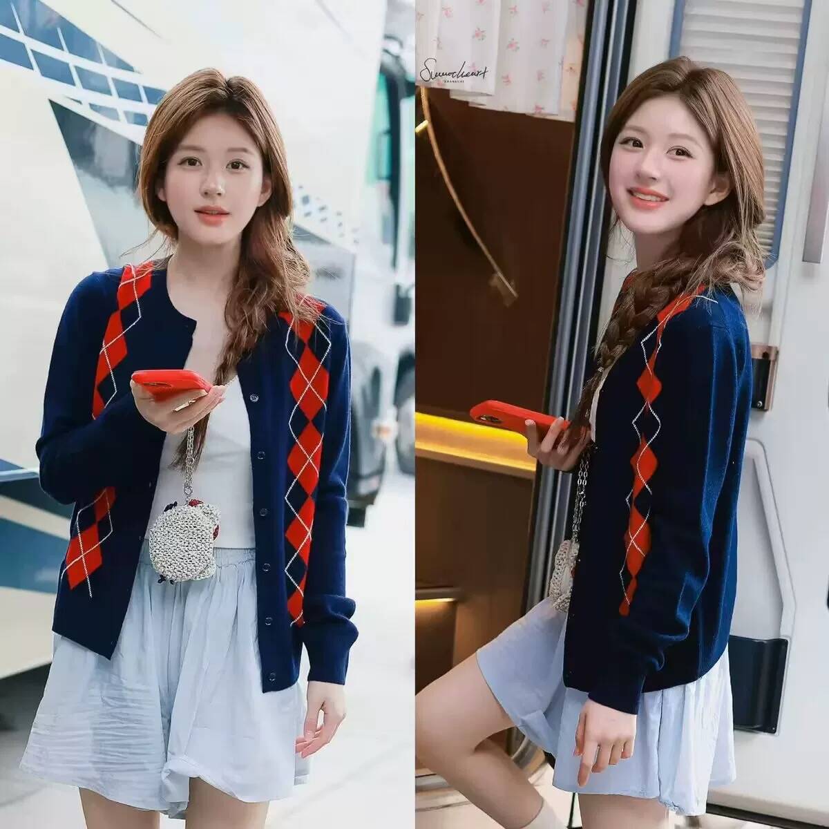赵露思明星同款复古拼接菱格针织女2025秋季撞色甜美毛衣开衫外套