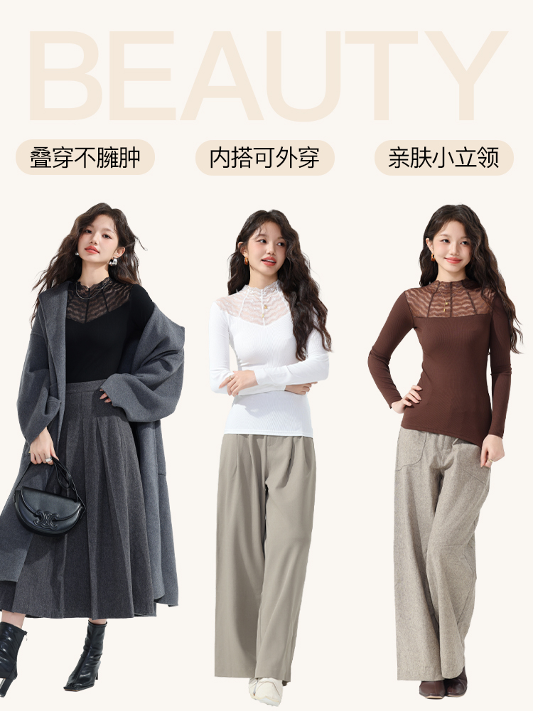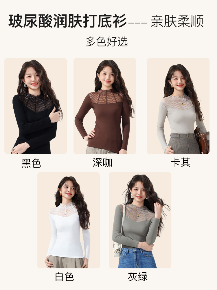 蕾丝打底衫女内搭2025新款半高领秋冬莫代尔修身显瘦长袖上衣