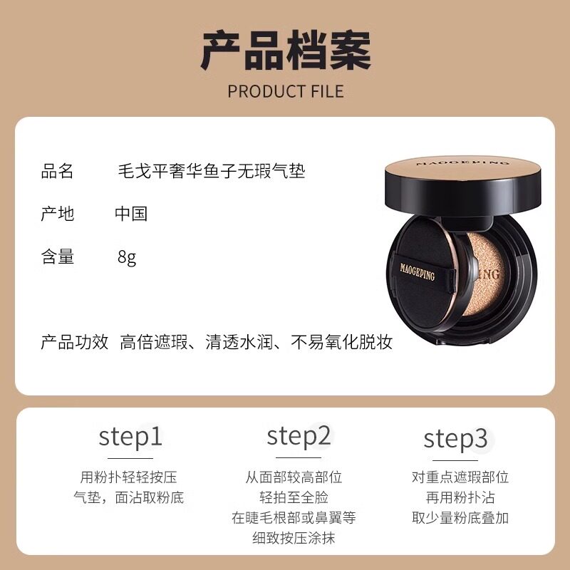 直男都夸的无瑕底妆!毛戈平鱼子酱气垫粉底液清透养肤遮瑕8g 14g