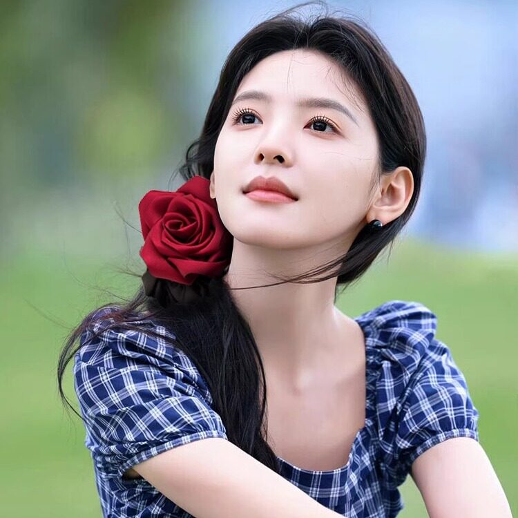 张若楠同款红色玫瑰大肠发圈