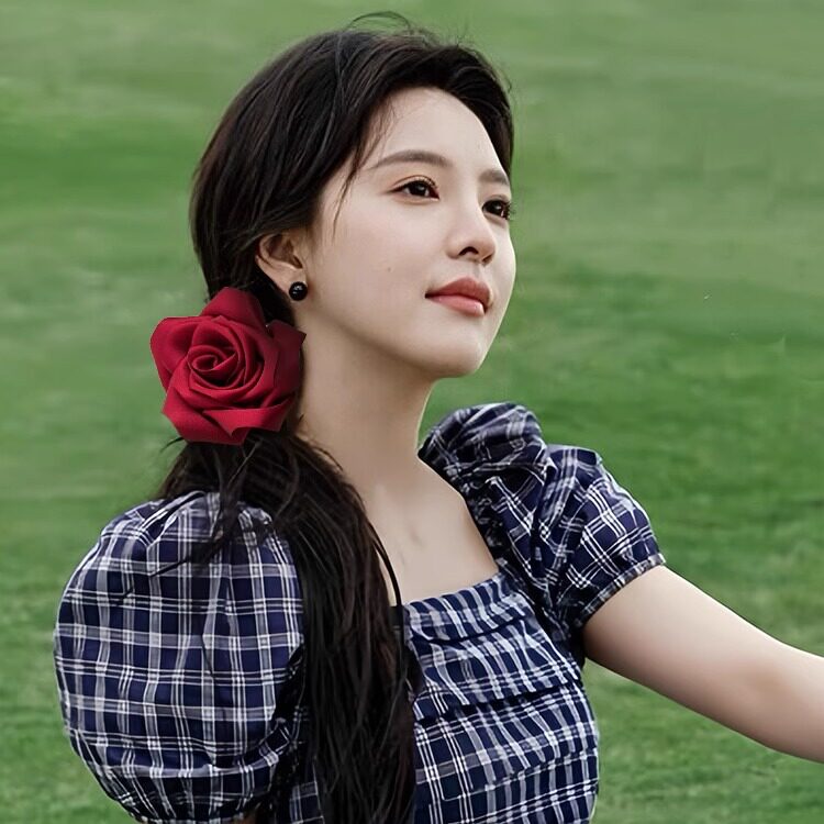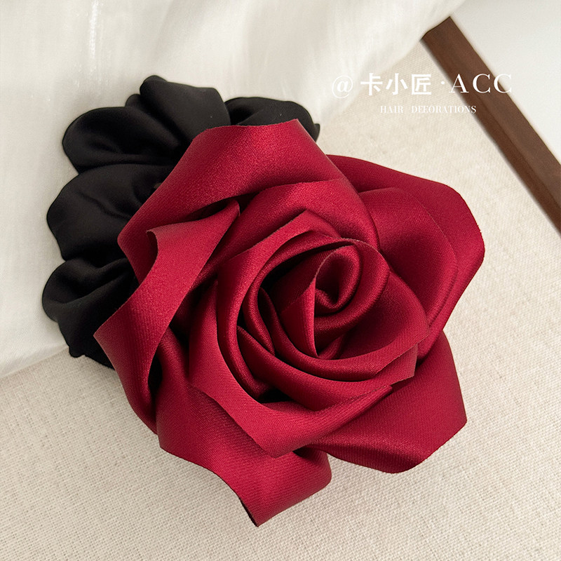 张若楠同款红色玫瑰大肠发圈女法式氛围感花朵发绳扎马尾皮筋发饰