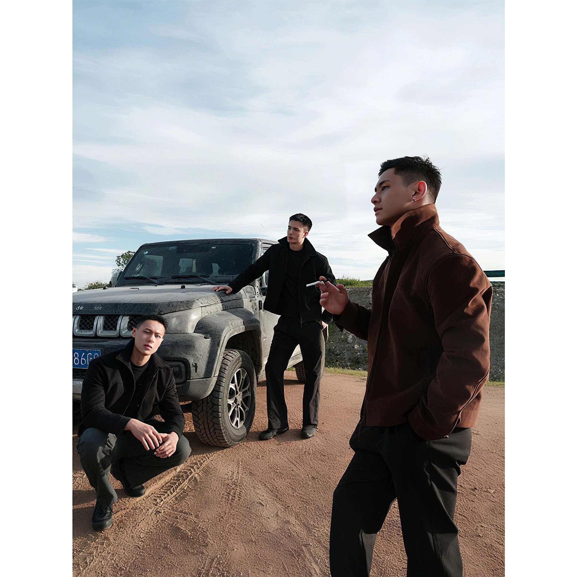 日本品质黑色仿麂皮翻领夹克男款秋季高级感潮牌美式复古磨砂短款