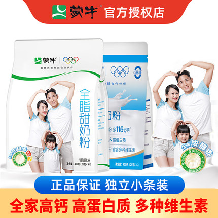 蒙牛全脂甜奶粉高钙400g袋成人女士学生中老年奶粉冲饮早餐牛奶粉