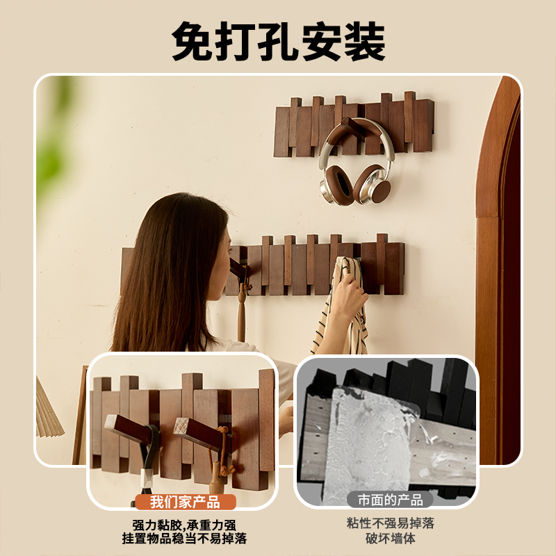 实木钢琴键挂衣架墙上壁挂钩卧室玄关入户进门后置物免打孔衣帽架