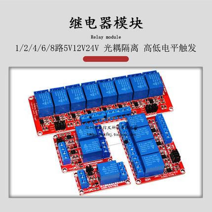 继电器模块1/2/4/8路5V12V24V支持高低电平触发带光耦隔离单片机