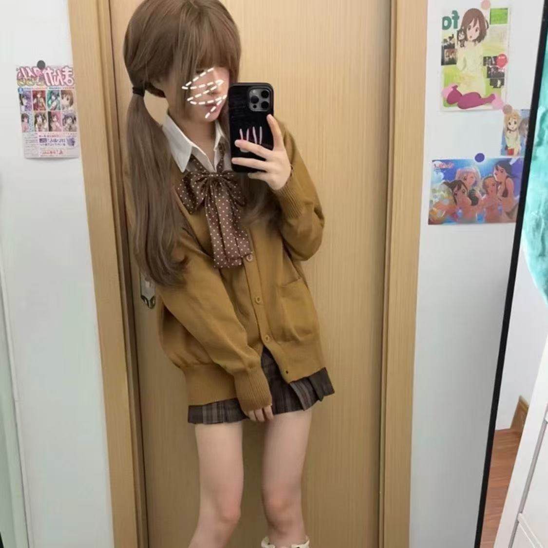 秋季JK制服针织衫软妹套装新品焦糖可颂jk格裙套装开衫毛衣外套女