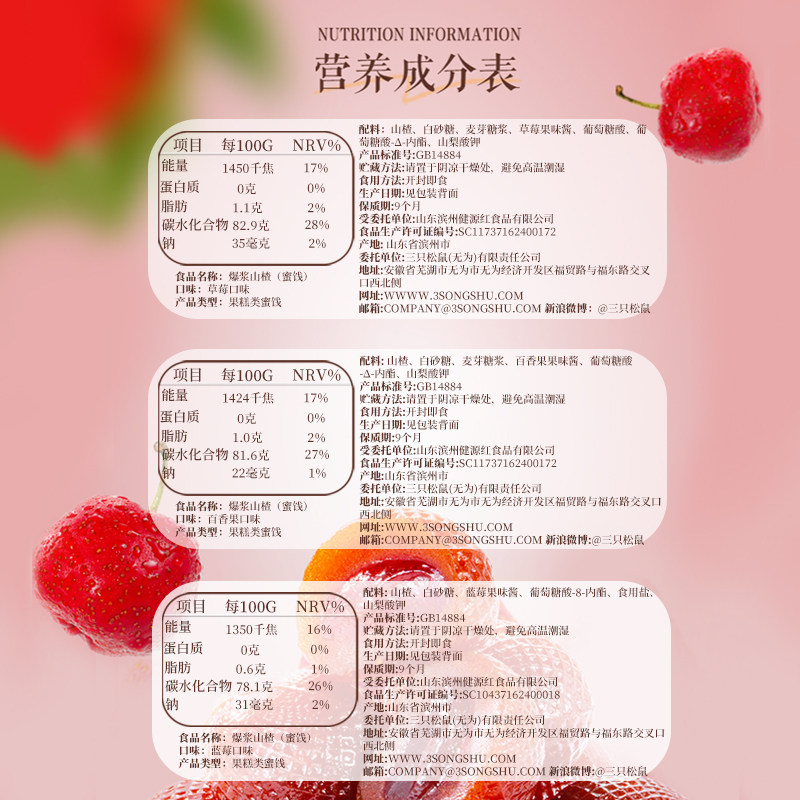 【三只松鼠_爆浆山楂】蓝莓草莓百香果流心办公零食独立包装