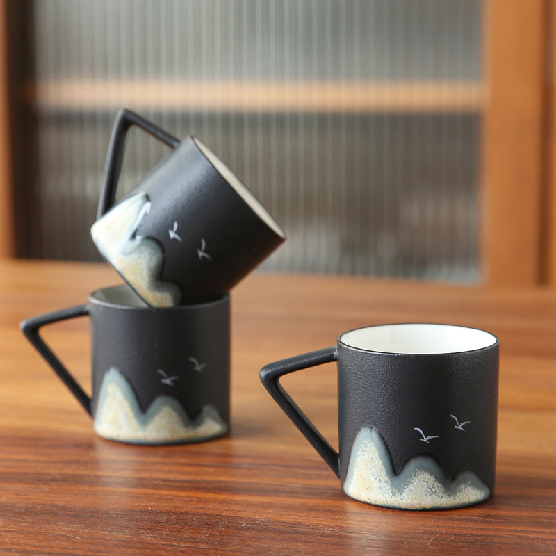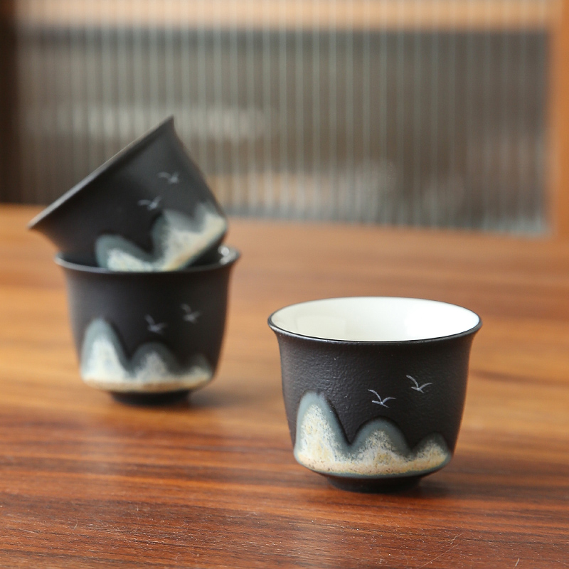 围炉煮茶杯黑陶小茶杯家用功夫茶具套装主人杯单杯带把陶瓷品茗杯