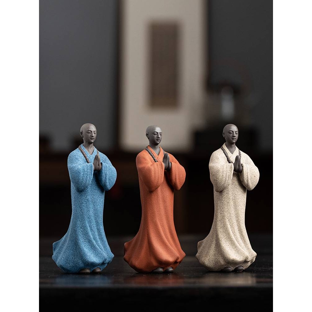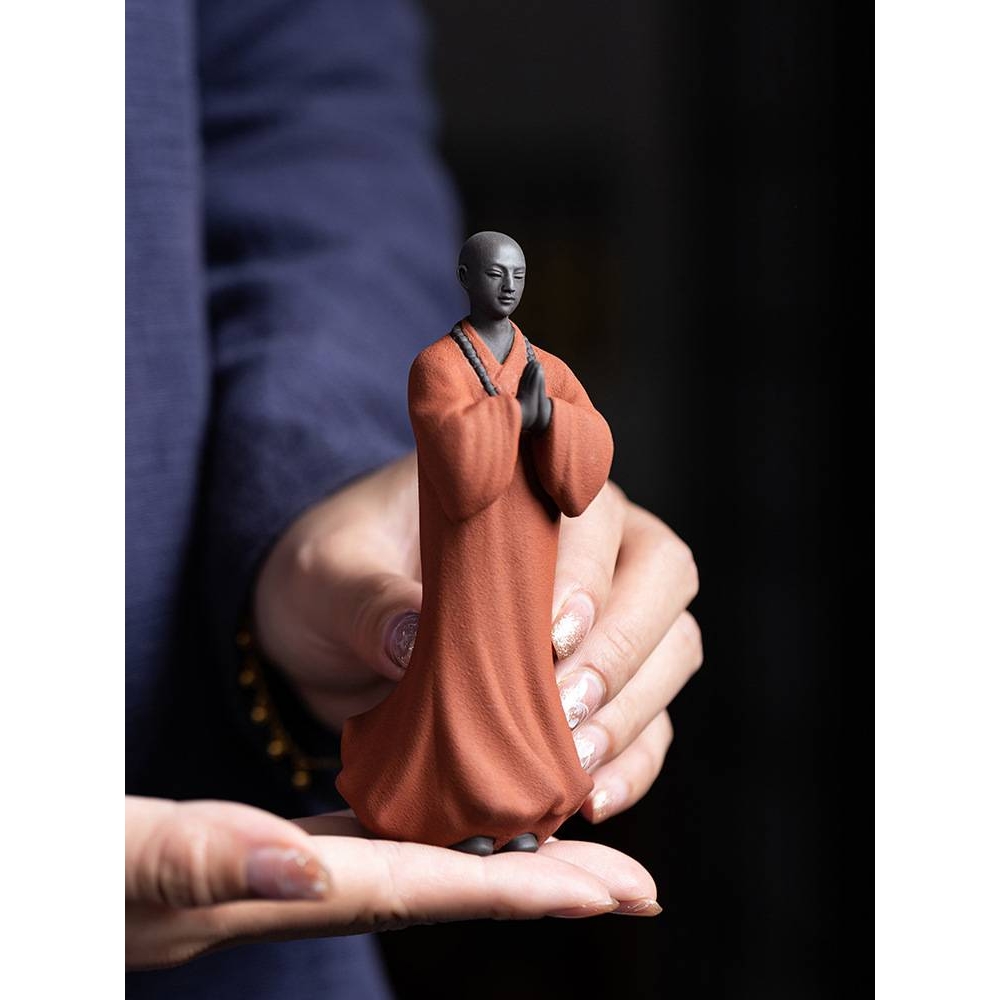 新中式紫砂小和尚摆件禅意家居装饰品陶瓷小沙弥盆景假山鱼缸造景