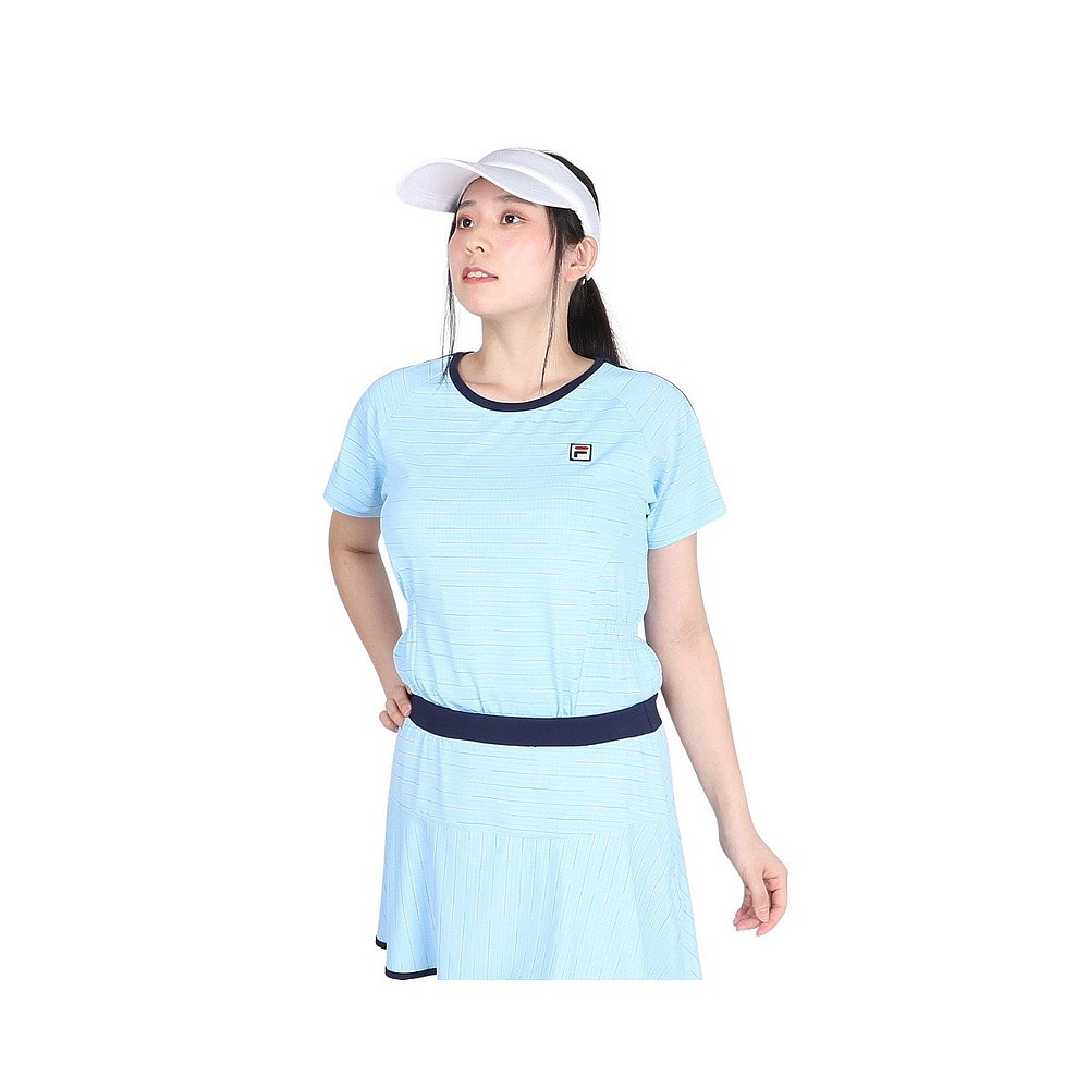 日潮跑腿FILA斐乐 女款网球服比赛短袖条纹T恤 Saxophone L