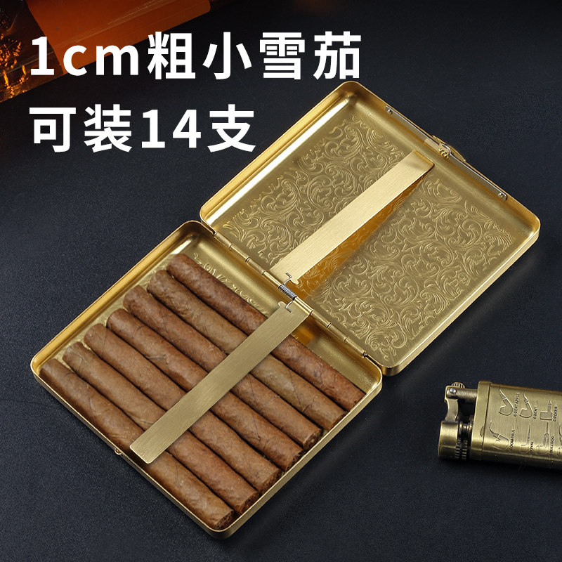 小雪茄金属烟盒14支装1cm雪茄保湿密封防压抗潮男士便携式收纳盒