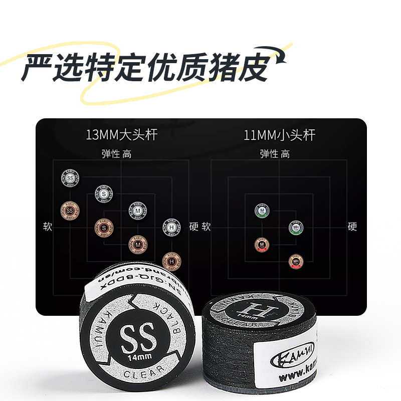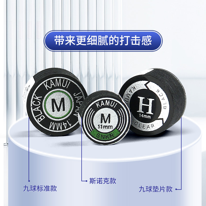 日本卡姆大头杆皮头垫片超级斩多层九球杆皮头14mm黑八台球杆枪头