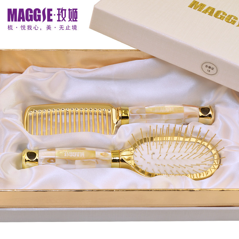 MAGGIE玫姬梳子礼盒套装商务创意礼物按摩气囊气垫梳小号礼品金梳