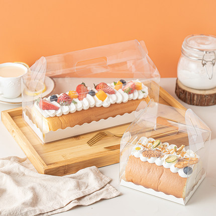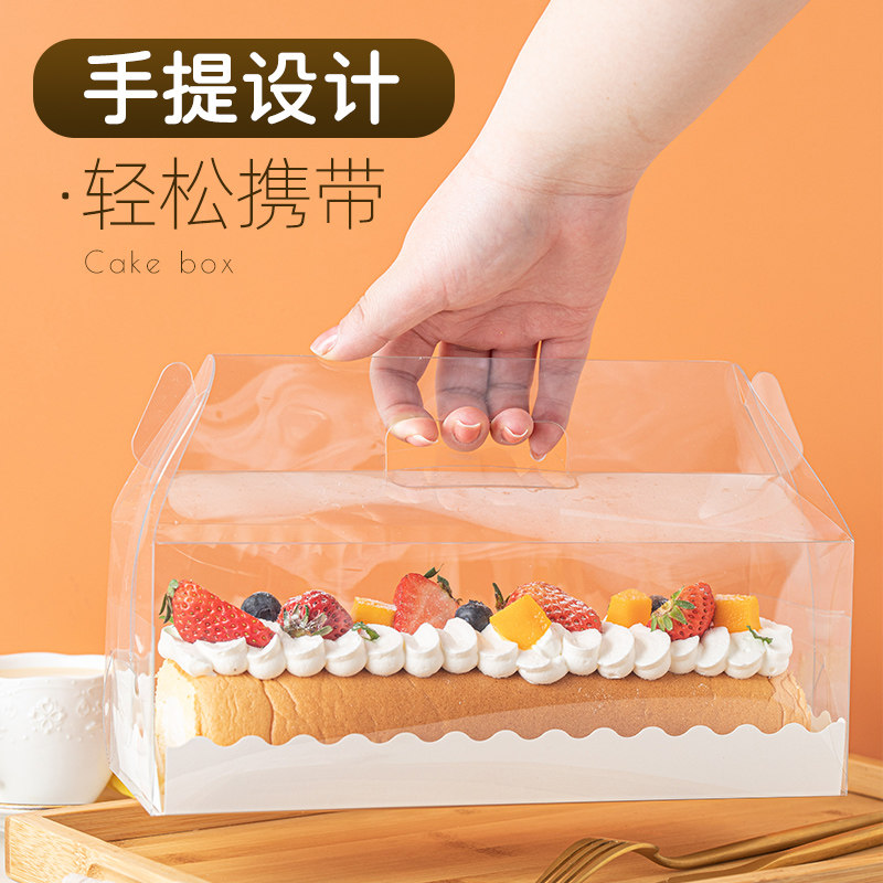 蛋糕卷包装盒透明毛巾卷瑞士卷盒子烘焙手提长条半整兔皮肉松卷盒