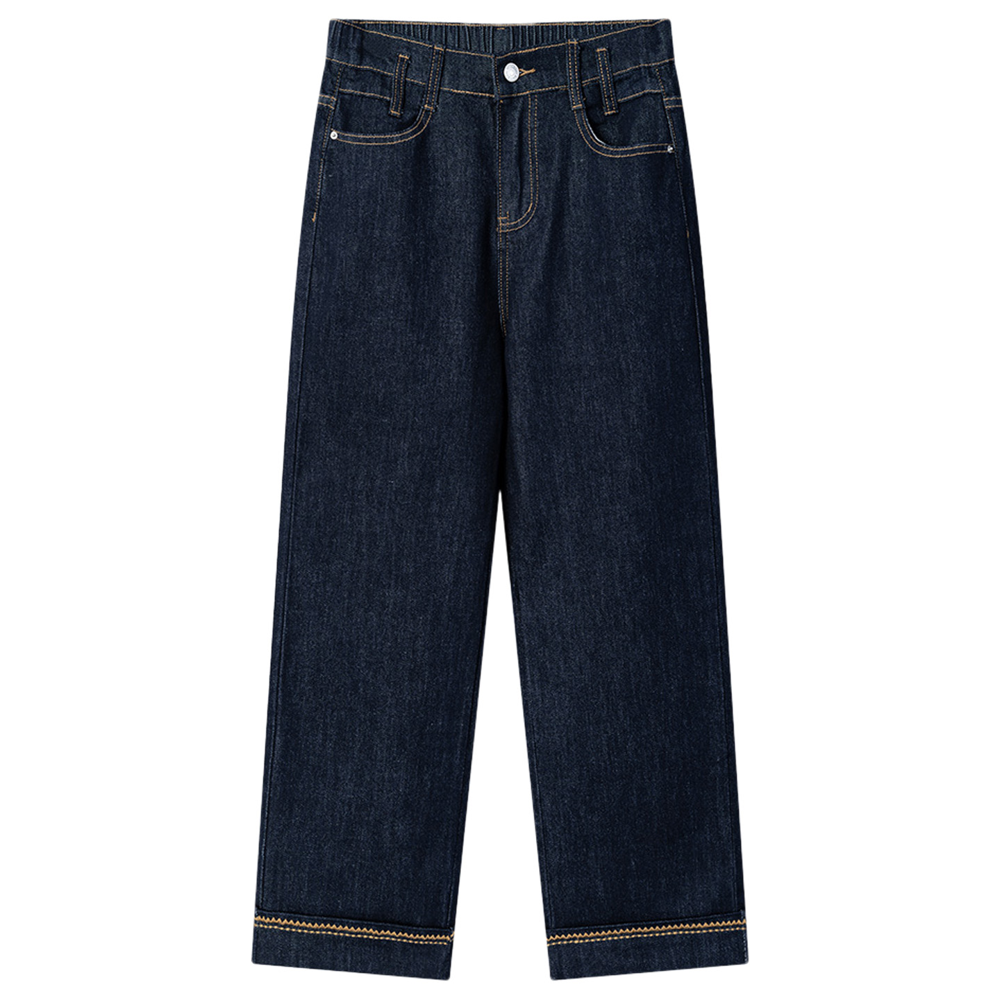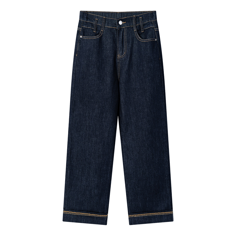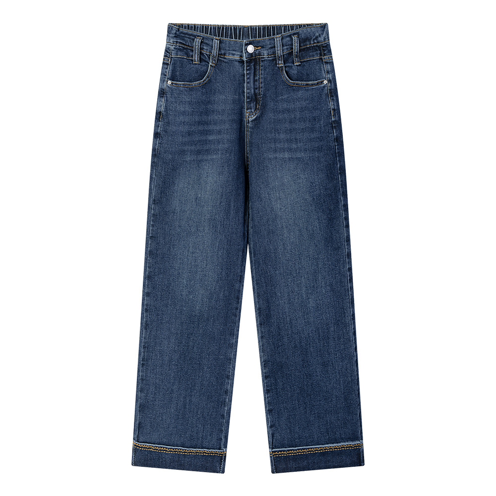 大码直筒牛仔裤女2025秋季新款高档胖mm宽松翻边松紧高腰休闲裤子