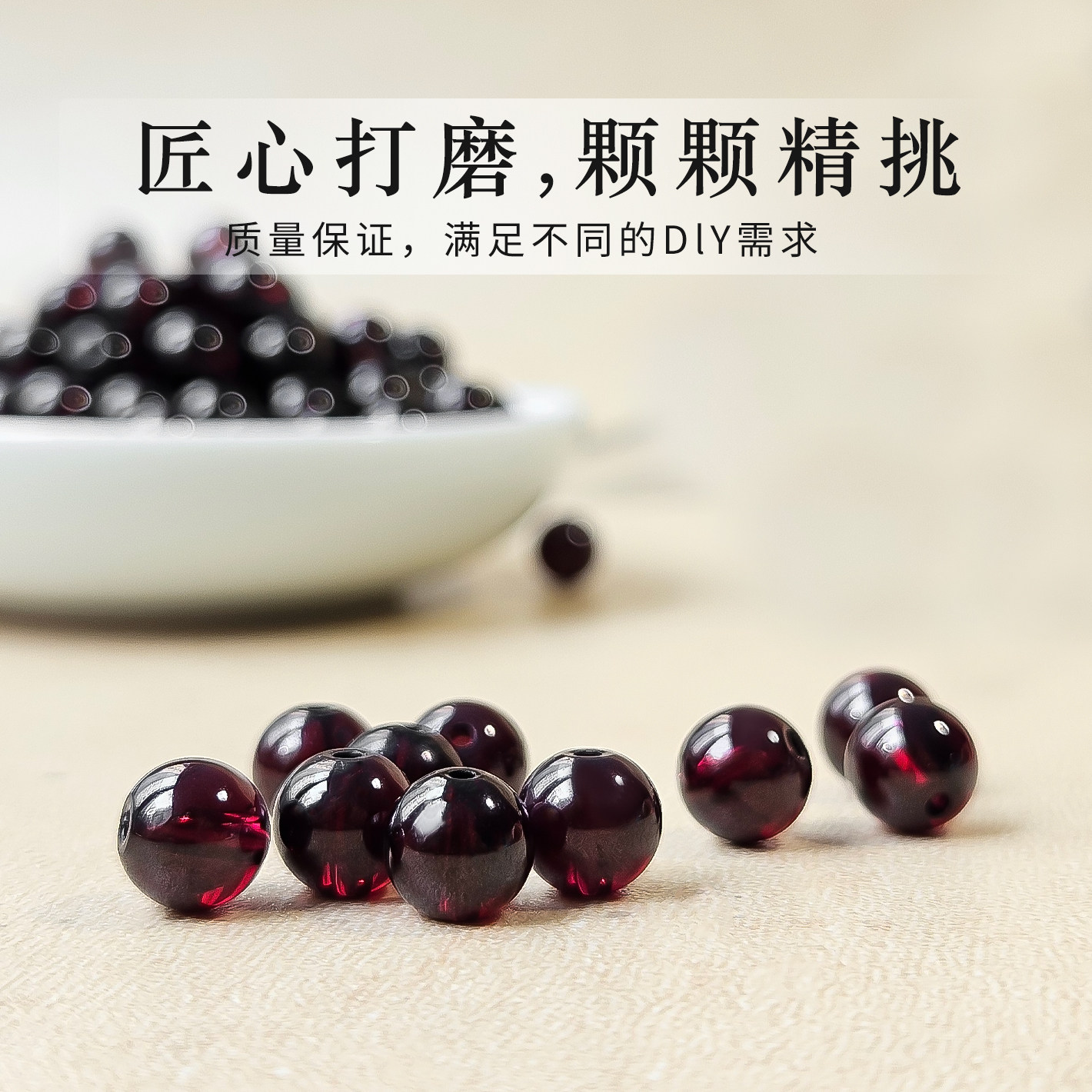 酒红天然石榴石散珠手串全净体三圈手链女款真品diy配件官方正品