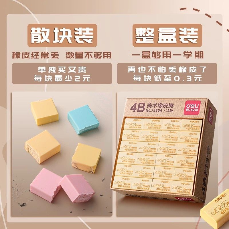 得力4B橡皮擦考试美术生专用橡皮擦得干净不留痕小学生专用素描无屑橡皮学习用品