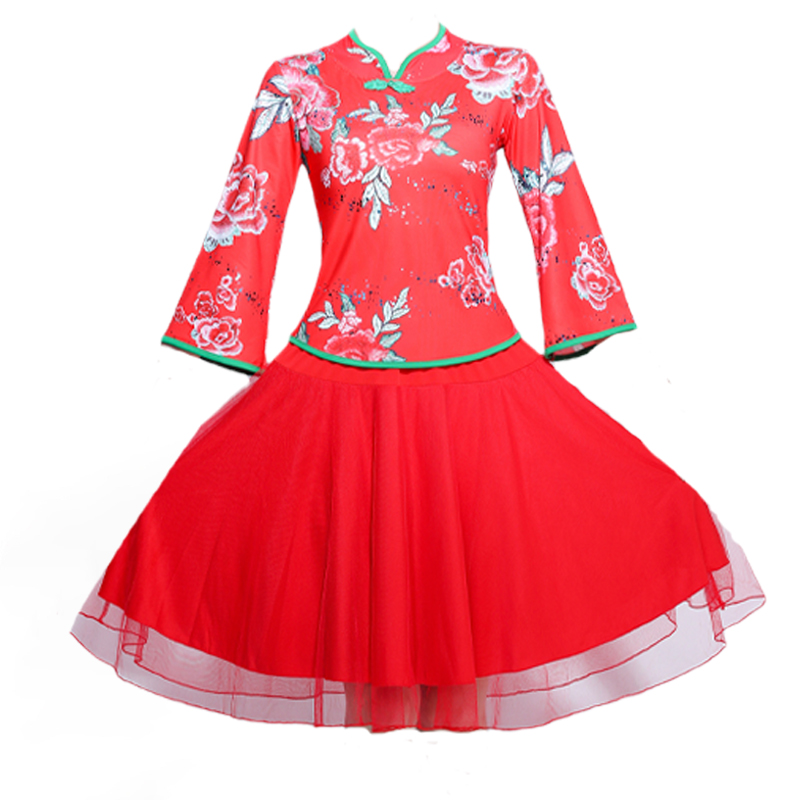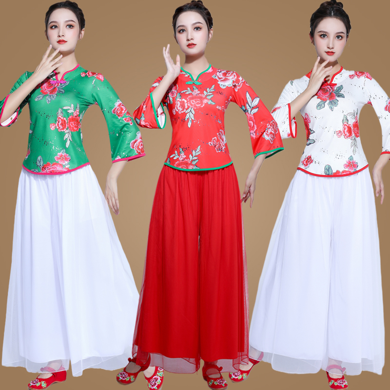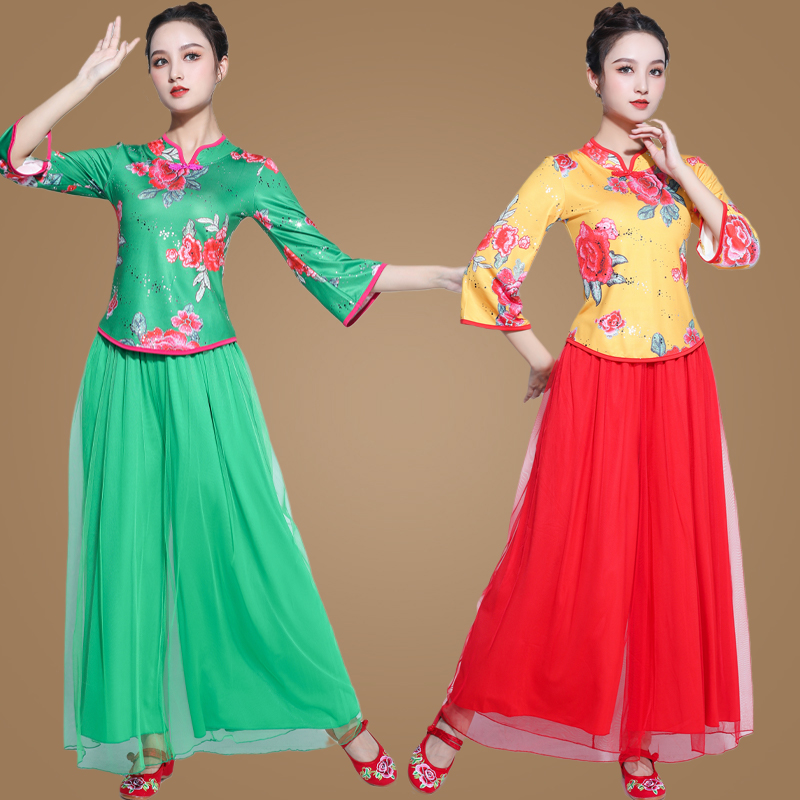 古典民族风秧歌服广场舞服装套装女表演舞蹈演出服印花春夏季新款