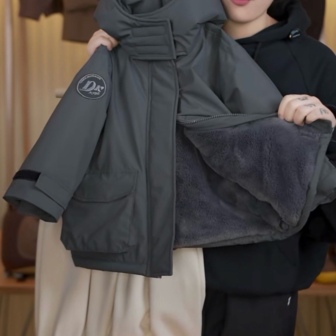 儿童秋冬加绒派克服外套男童帅气中大童棉衣加厚保暖棉袄小男孩潮