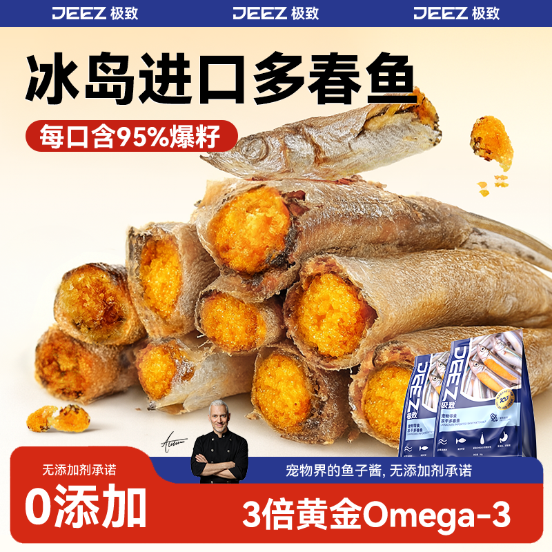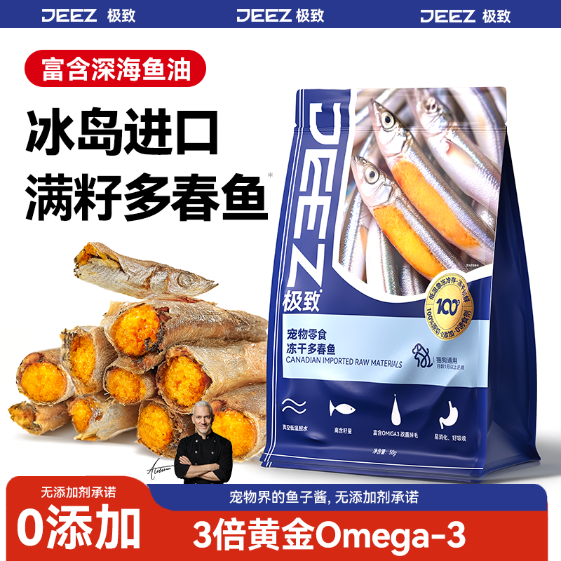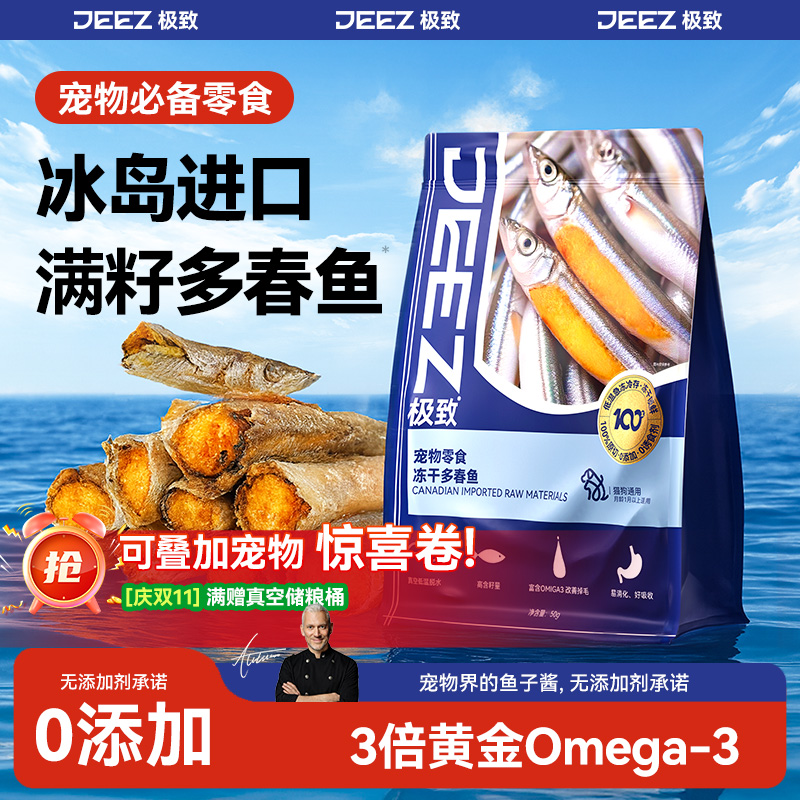 【JEEZ极致】冰岛进口满籽多春鱼冻干猫咪零食鱼油发腮洁齿狗通用