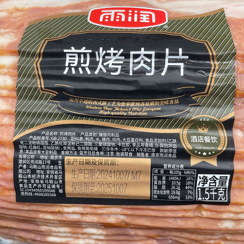雨润煎烤肉片1.5kg手抓饼早餐披萨烧烤火锅意面沙拉烘焙原料