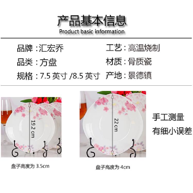 方盘家用6只景德镇陶瓷四方形深盘10个异形盘子套装 创意个性餐具