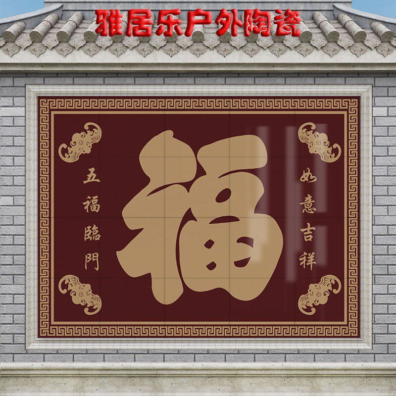 百福满门影壁照壁瓷砖庭院迎门墙农村F户外别墅福字背景墙大型壁
