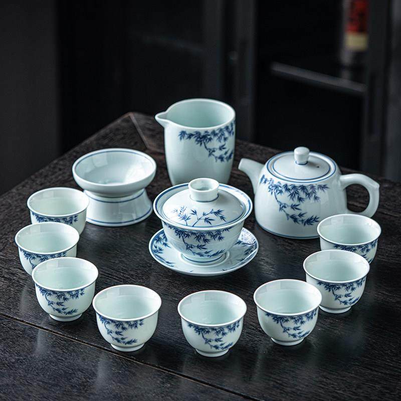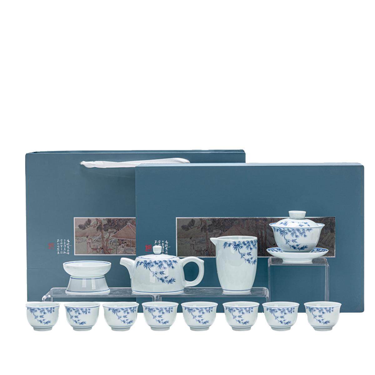 青花瓷功夫茶具套装家用陶瓷茶壶盖碗茶杯轻奢高档喝茶中式礼盒装