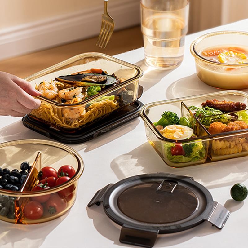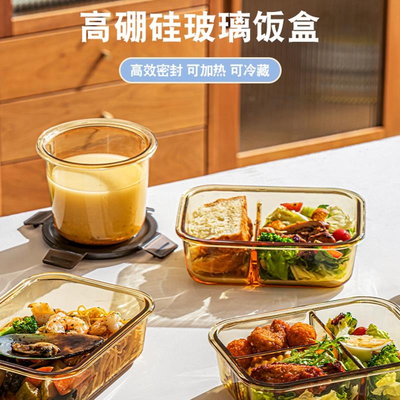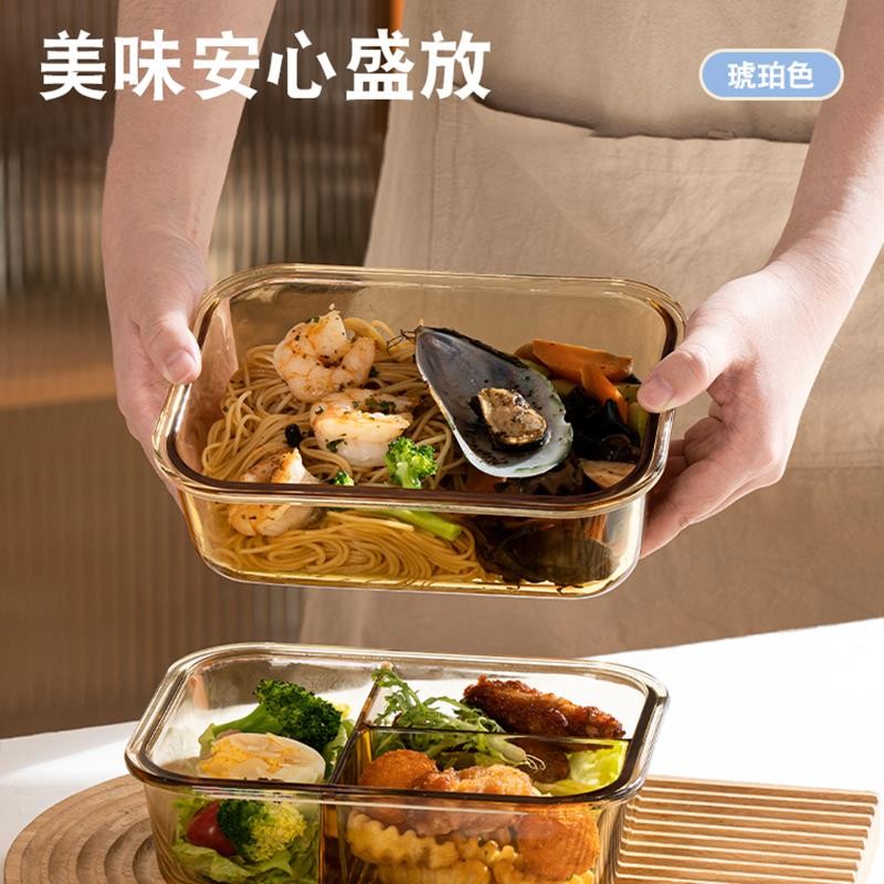 凡高微波炉专用玻璃保鲜盒高颜值饭盒大容量上班族分格便当盒