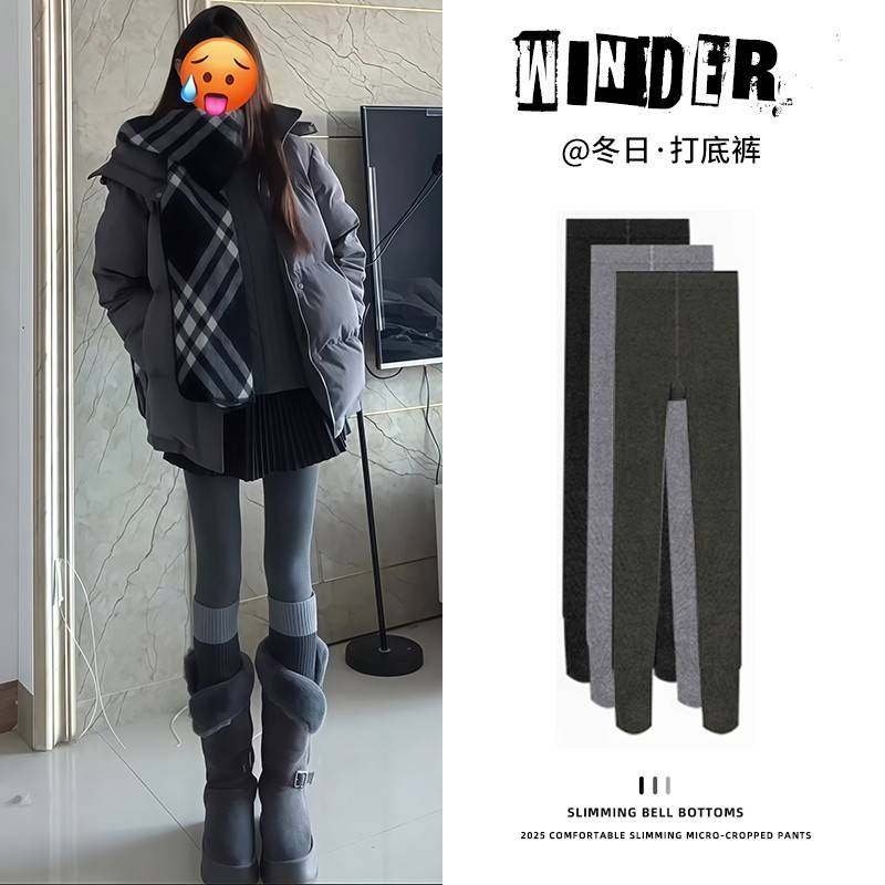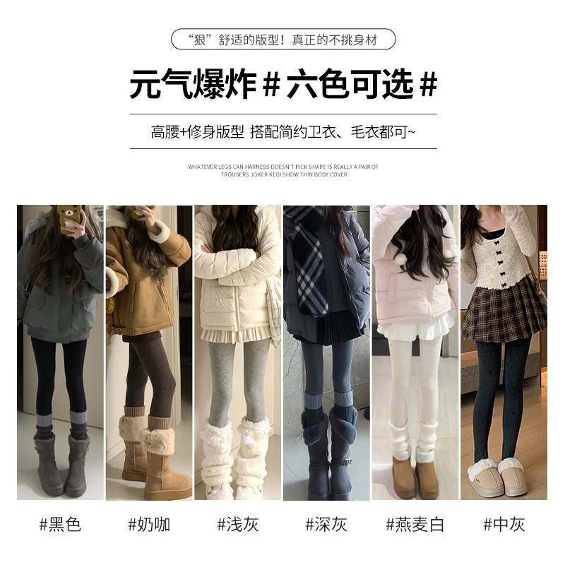 灰色加绒打底裤女冬外穿高腰保暖棉秋裤小个子加厚紧身踩脚连裤袜