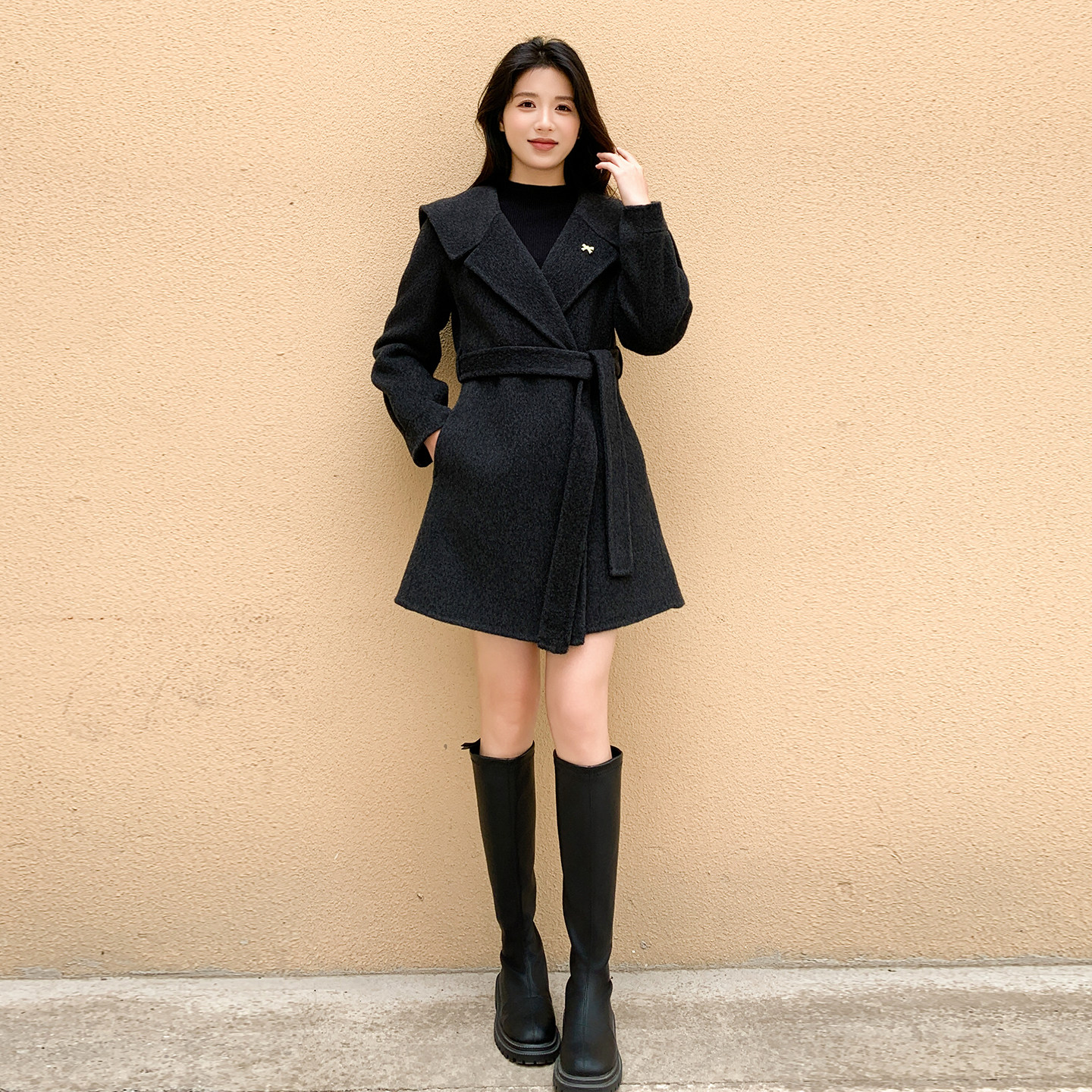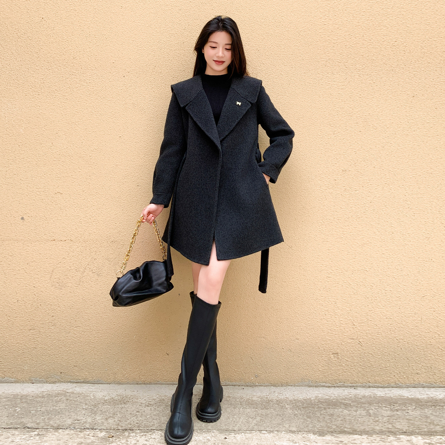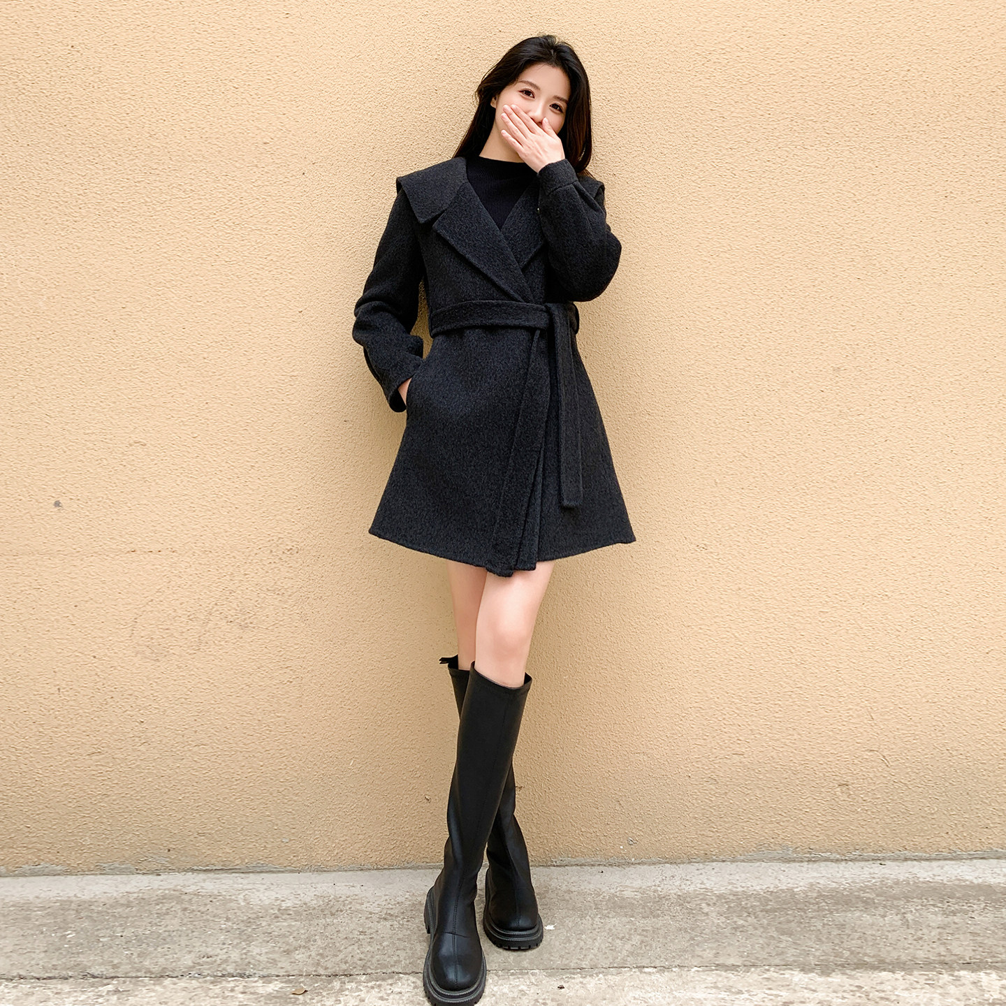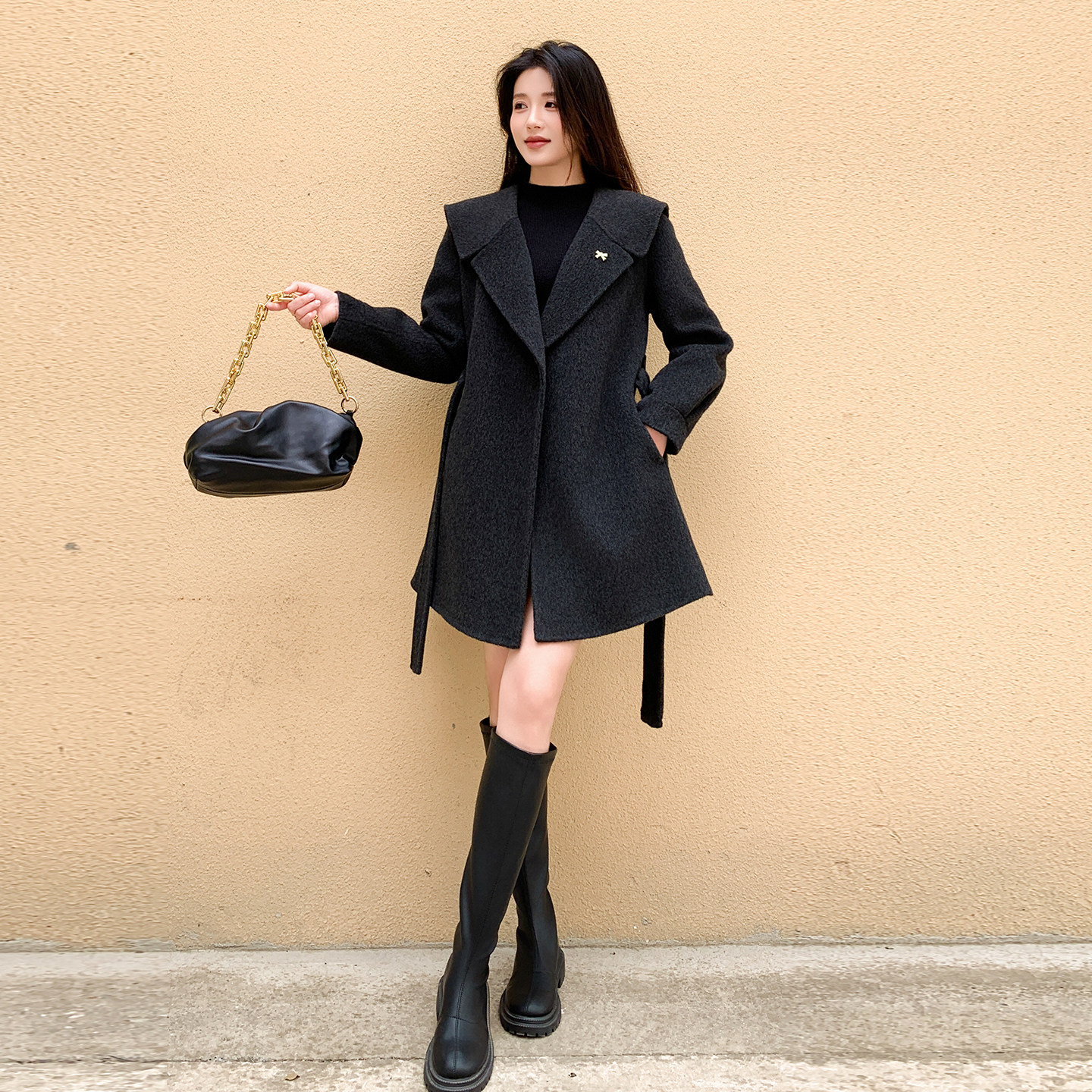 高端双面羊绒大衣女秋冬2025年新款短款系带宽松显瘦羊毛毛呢外套