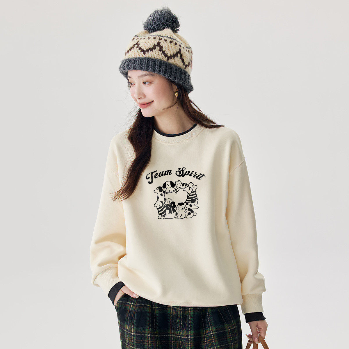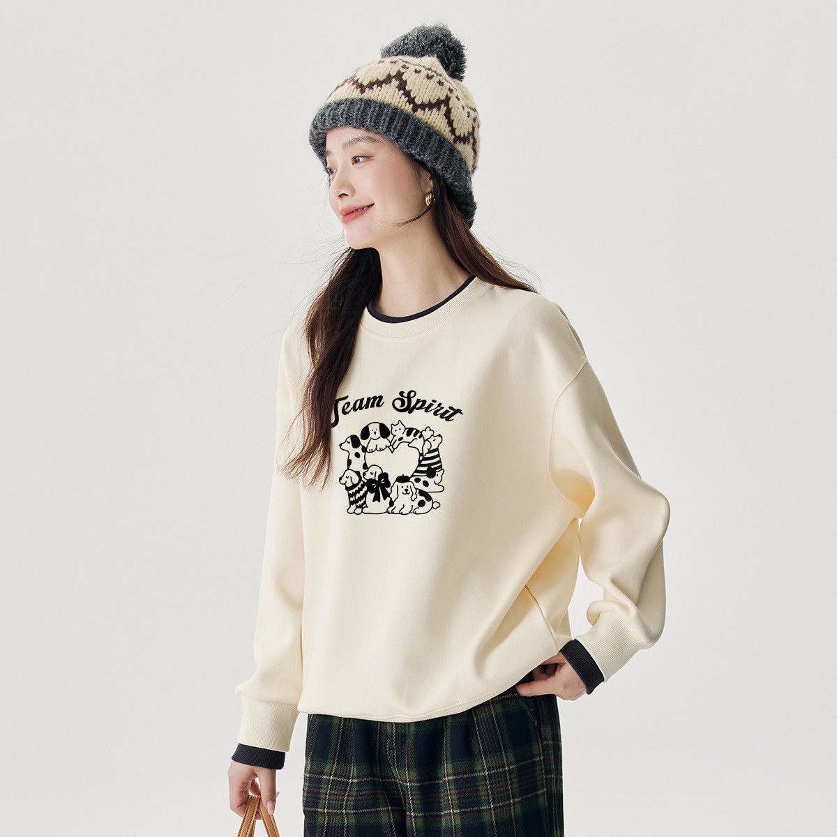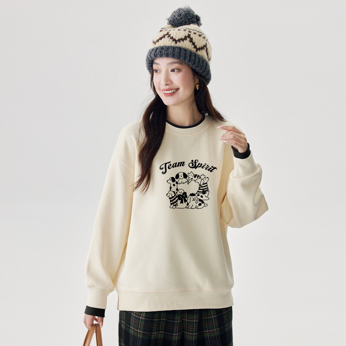 茵曼2026春季新款女卫衣外套长袖宽松显瘦假两件拼接撞色百搭上衣