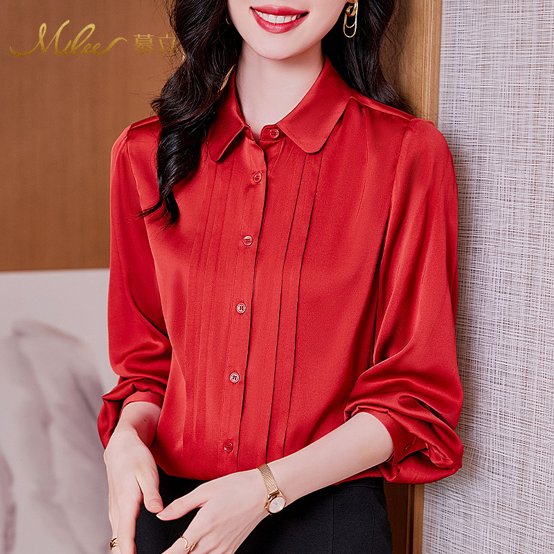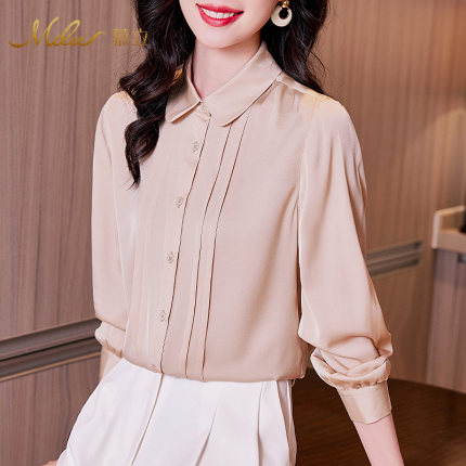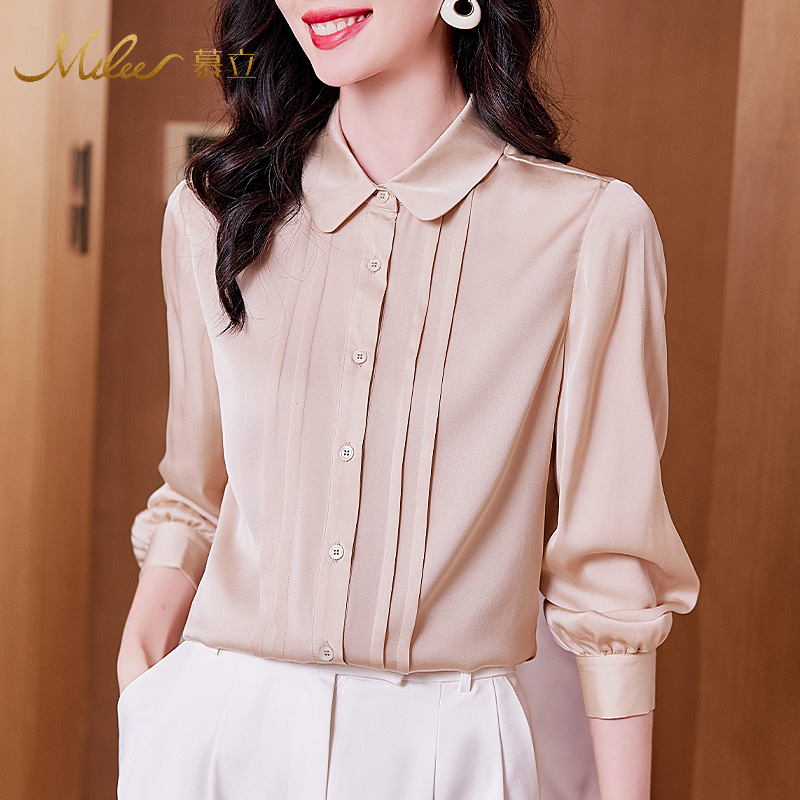 Mulee/慕立2024新款长袖显瘦真丝女士衬衫百搭优雅通勤OL桑蚕丝春