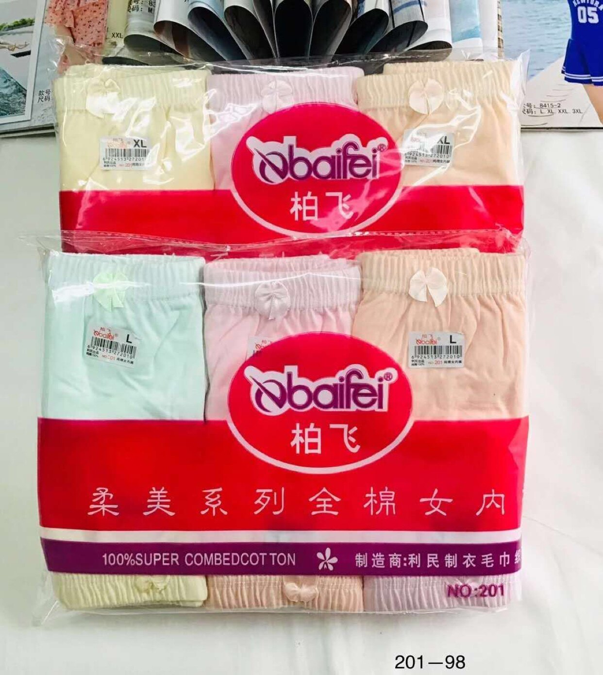 柏飞 纯棉女内裤全棉纯色传统孕妈妈中高腰柔软三角中老年201/202