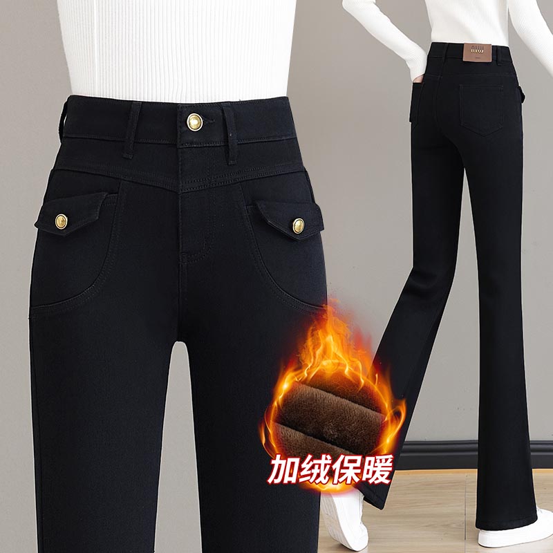 加绒微喇牛仔裤2023冬季新款时尚