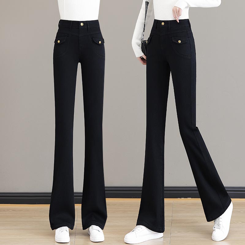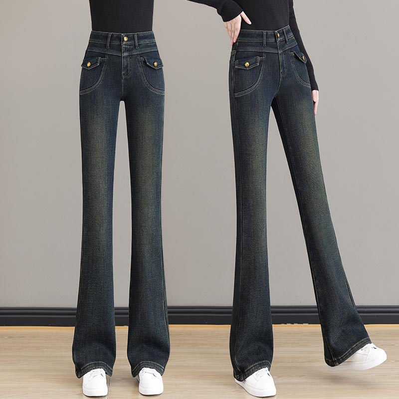 加绒微喇牛仔裤2024冬季新款时尚高腰复古高弹显瘦微喇裤加厚保暖