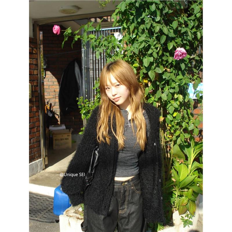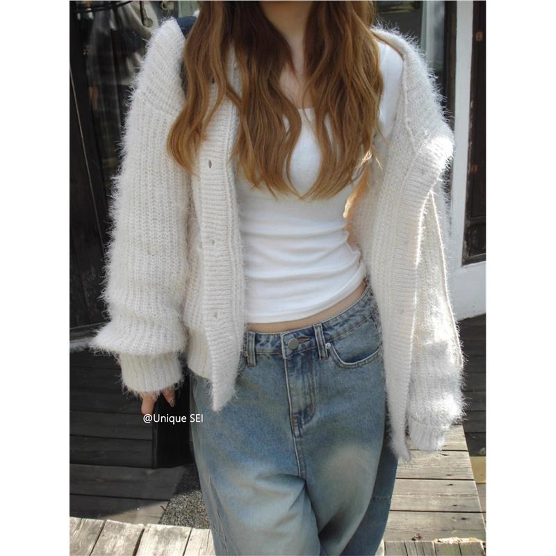 今年流行日系复古百搭毛绒绒轻亚风宽松连帽针织开衫外套毛衣女