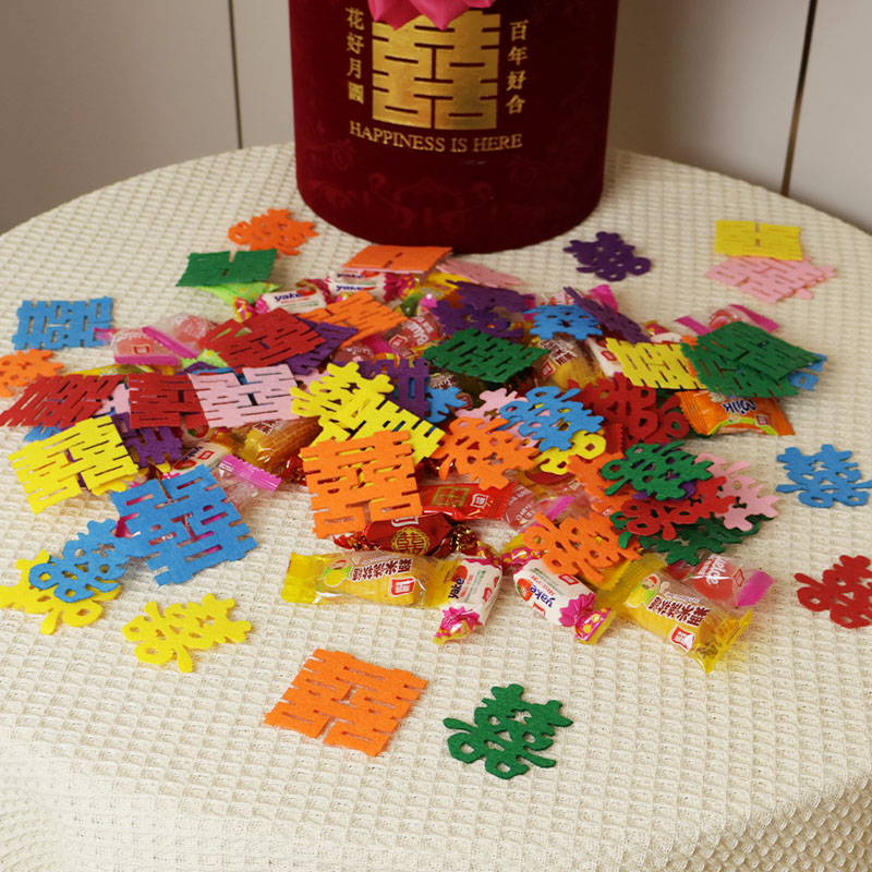 结婚礼手抛喜字彩色撒床果盘囍婚房装饰布置婚庆小喜字贴用品大全