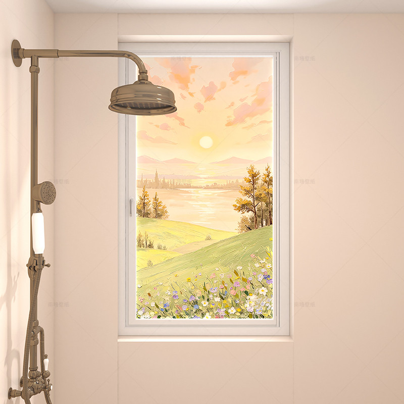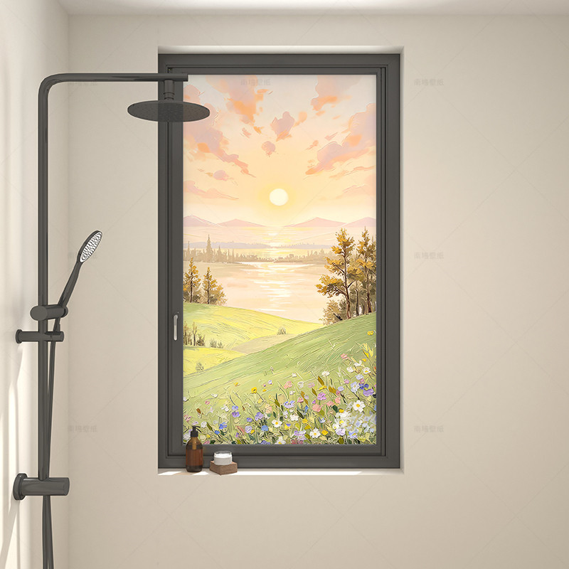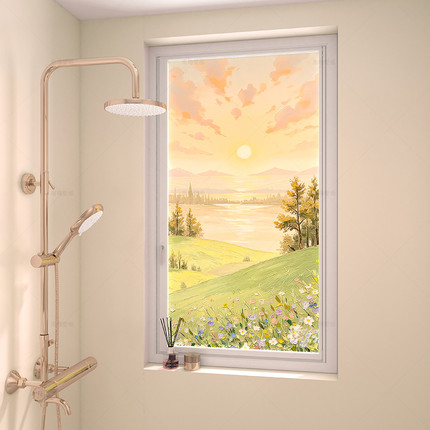 法式油画玻璃贴纸厕所卫生间浴室窗户防窥透光不透明防走光磨砂膜