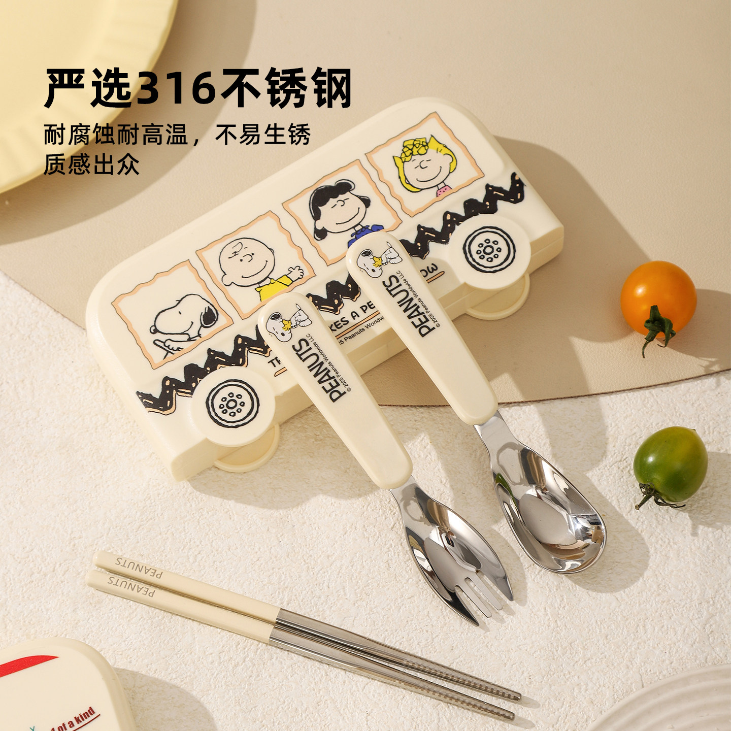 史努比儿童便携餐具盒短筷子勺子套装不锈钢餐具套装小学生专用