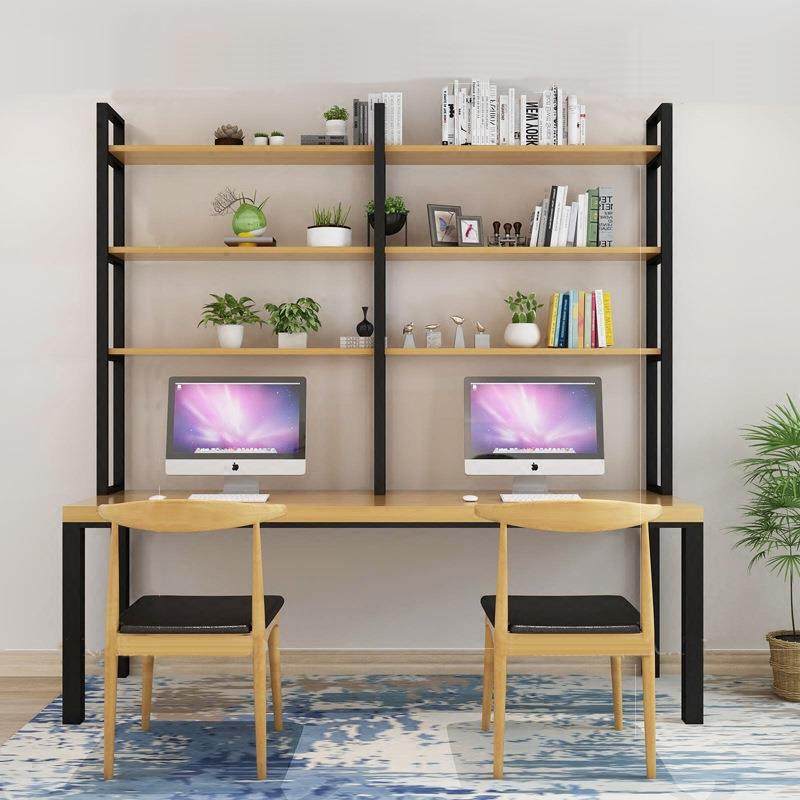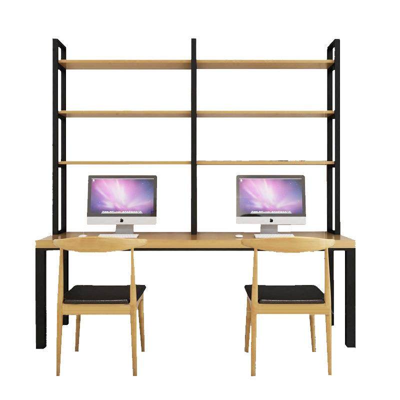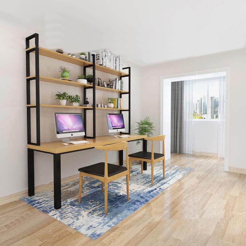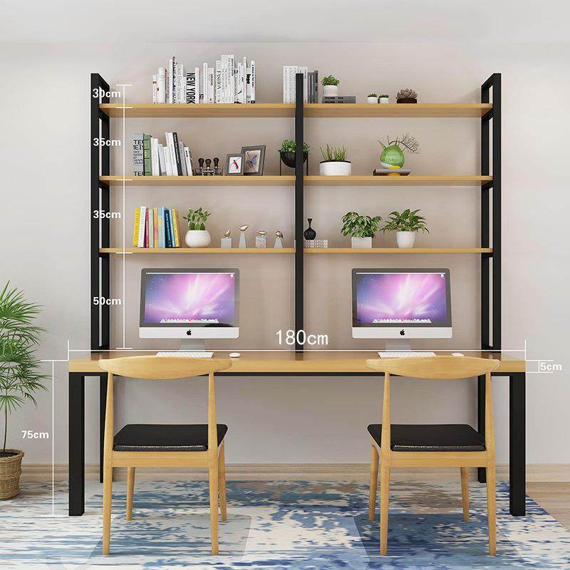 北欧实木铁艺美式台式电脑桌卧室书桌书架组合大型写字小户型家用