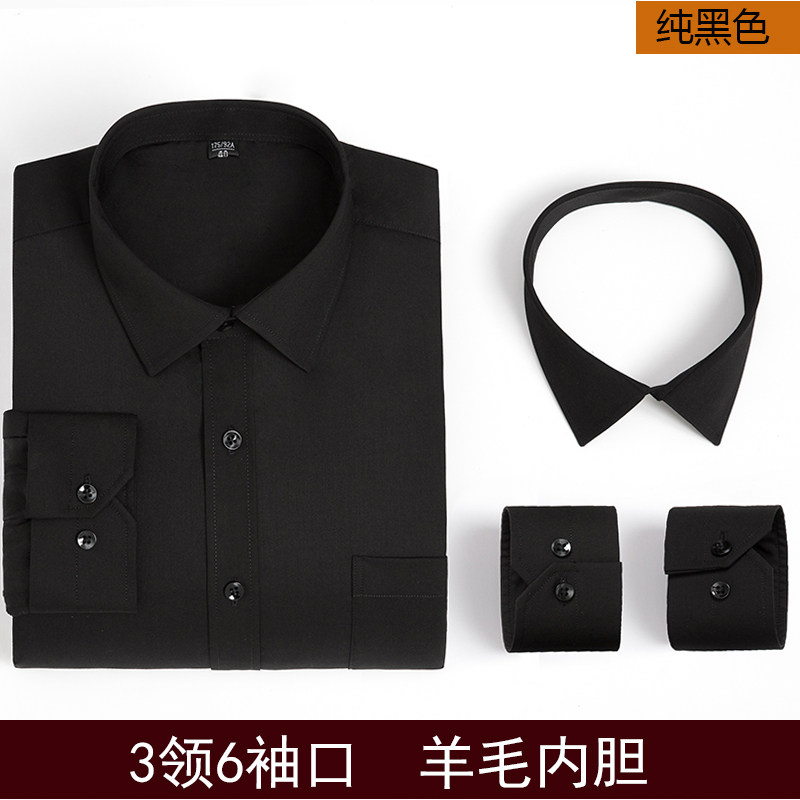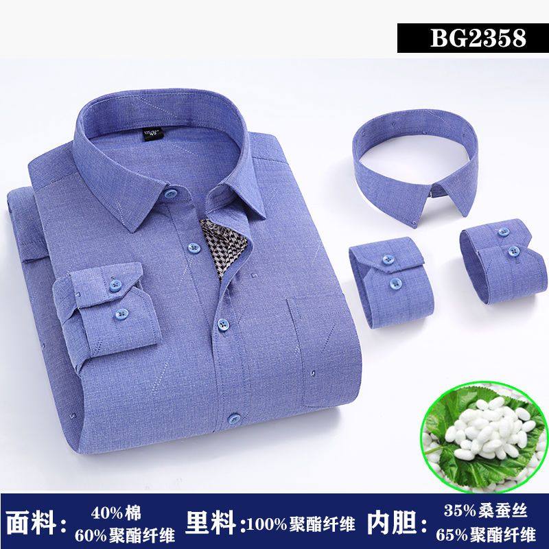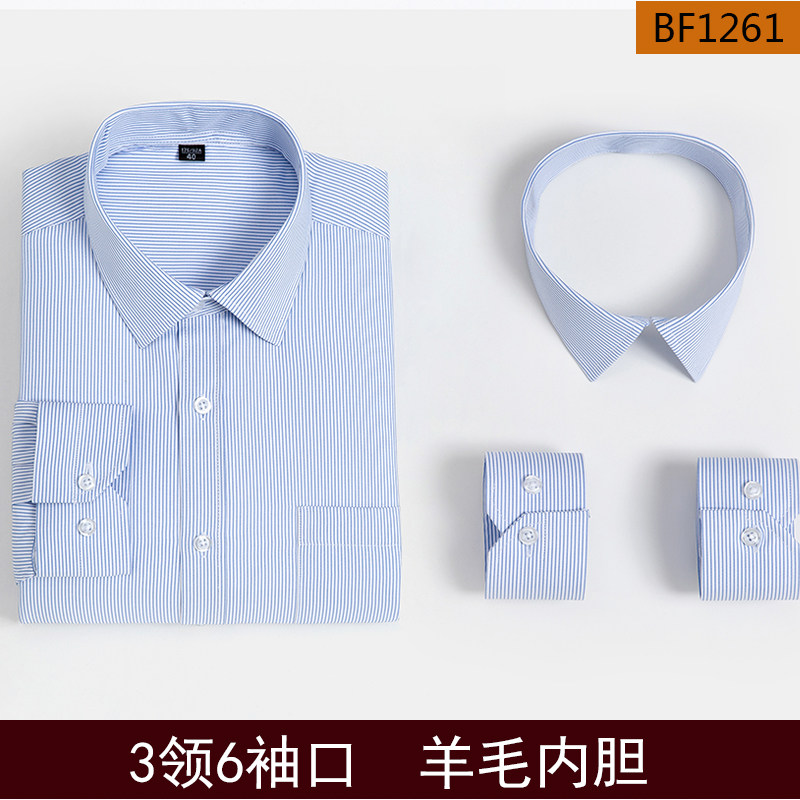 培罗蒙纯白色活领活袖保暖衬衫男加绒加厚蓝条纹可拆换多领棉衬衣