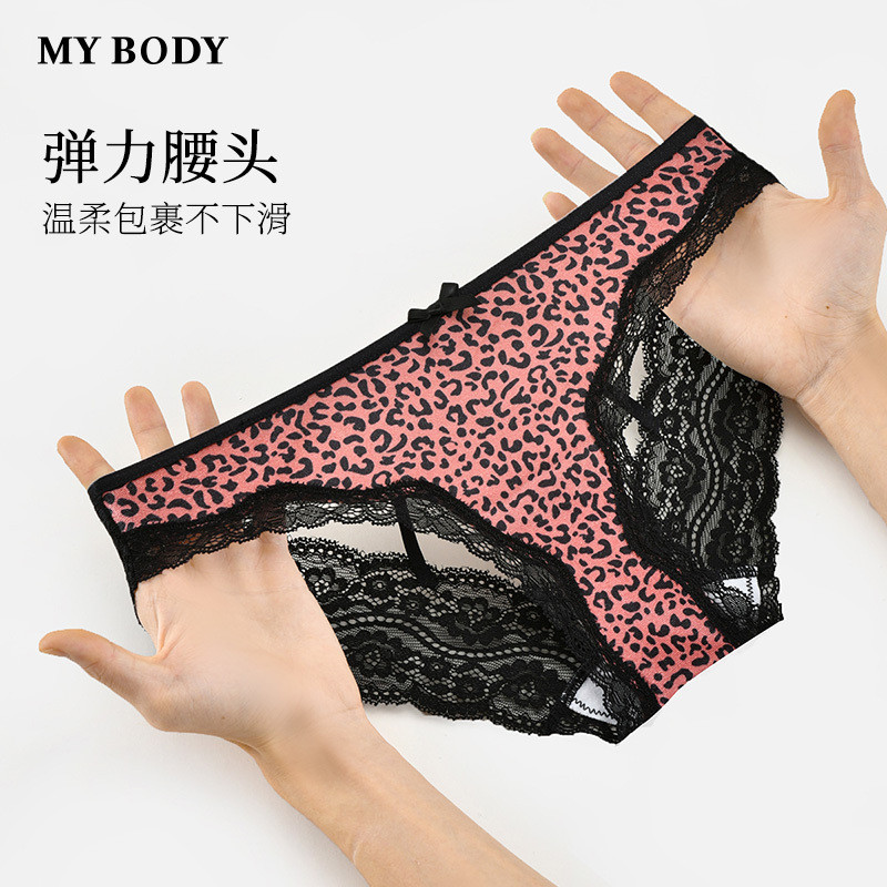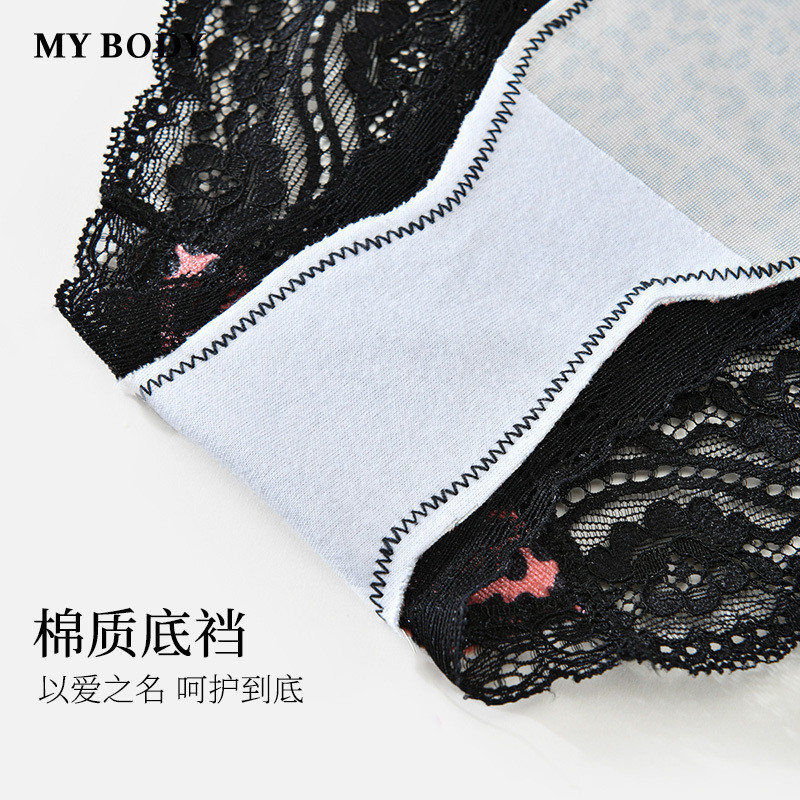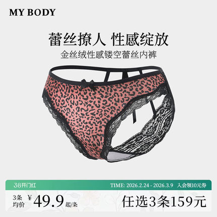 3件159|商场同款MYBODY蕾丝内裤金丝绒豹纹印花性感镂空三角裤女