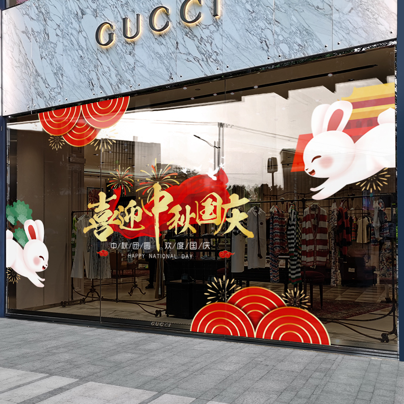 中秋国庆节装饰窗花贴氛围布置贴画商场店铺橱窗静电玻璃贴门贴纸