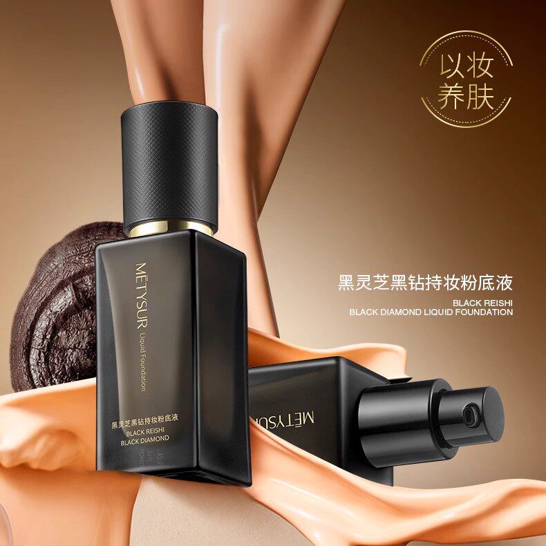 Metysur/美媞秀黑灵芝黑钻持妆粉底液保湿遮瑕控油防水养肤bb霜